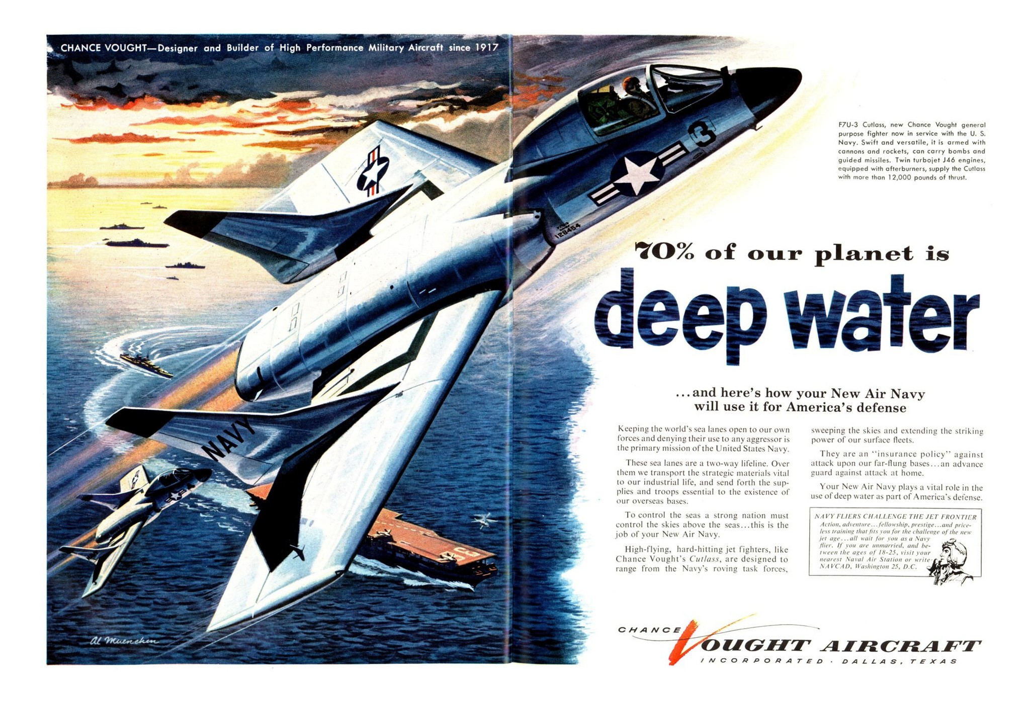 1955 70% of our planet is deep water … and here’s how your New Air Navy will use it for America’s defense. Change Vought Aircraft