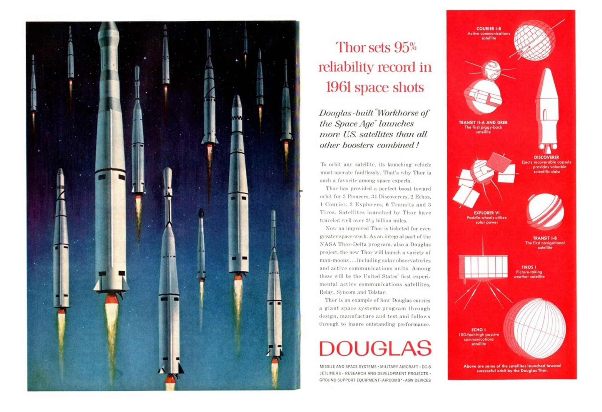 1962 Thor sets 95pros reliability record in 1961 space shots. Douglas