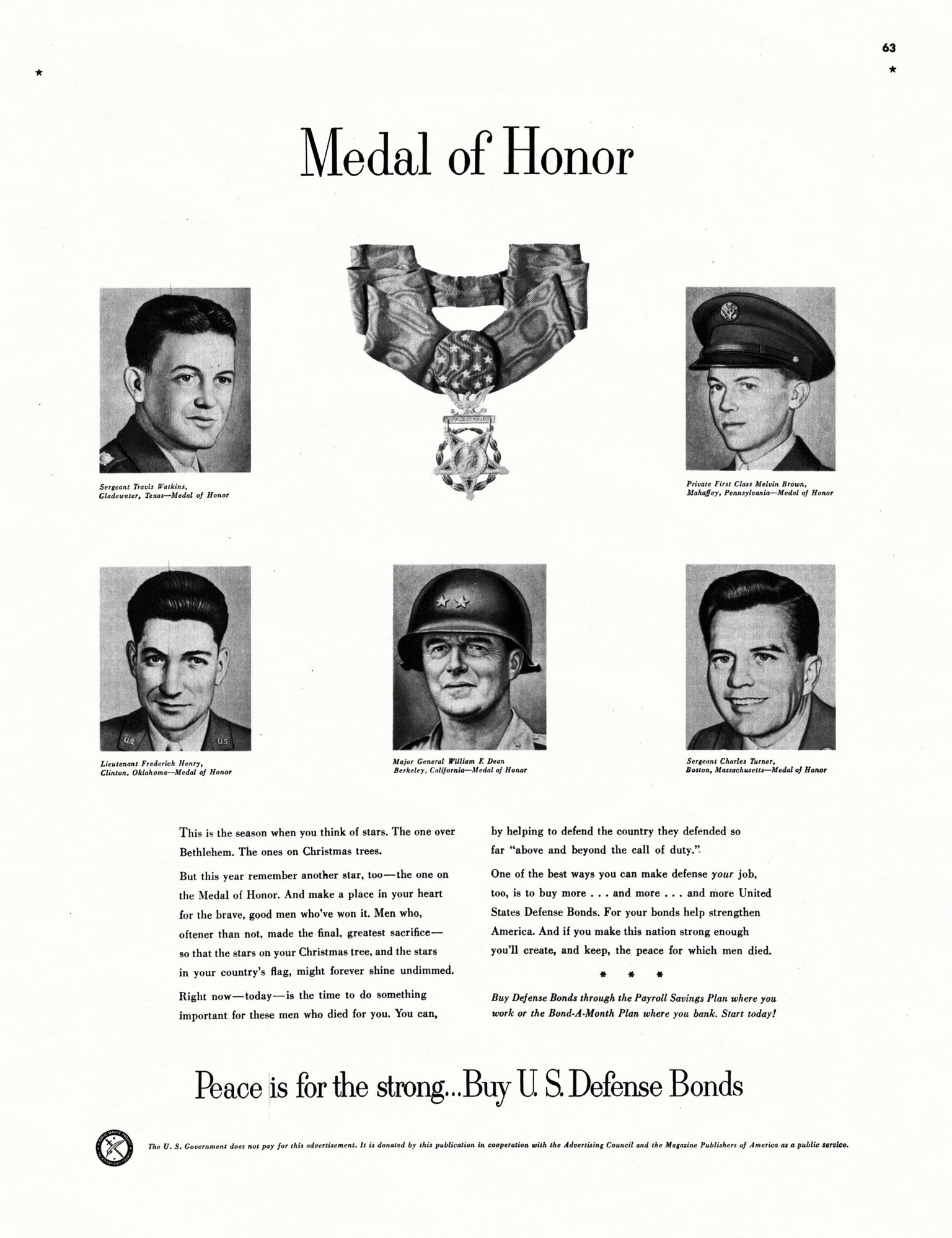 1951 Medal of Honor. Peace is for the strong... Buy U.S. Defence Bonds