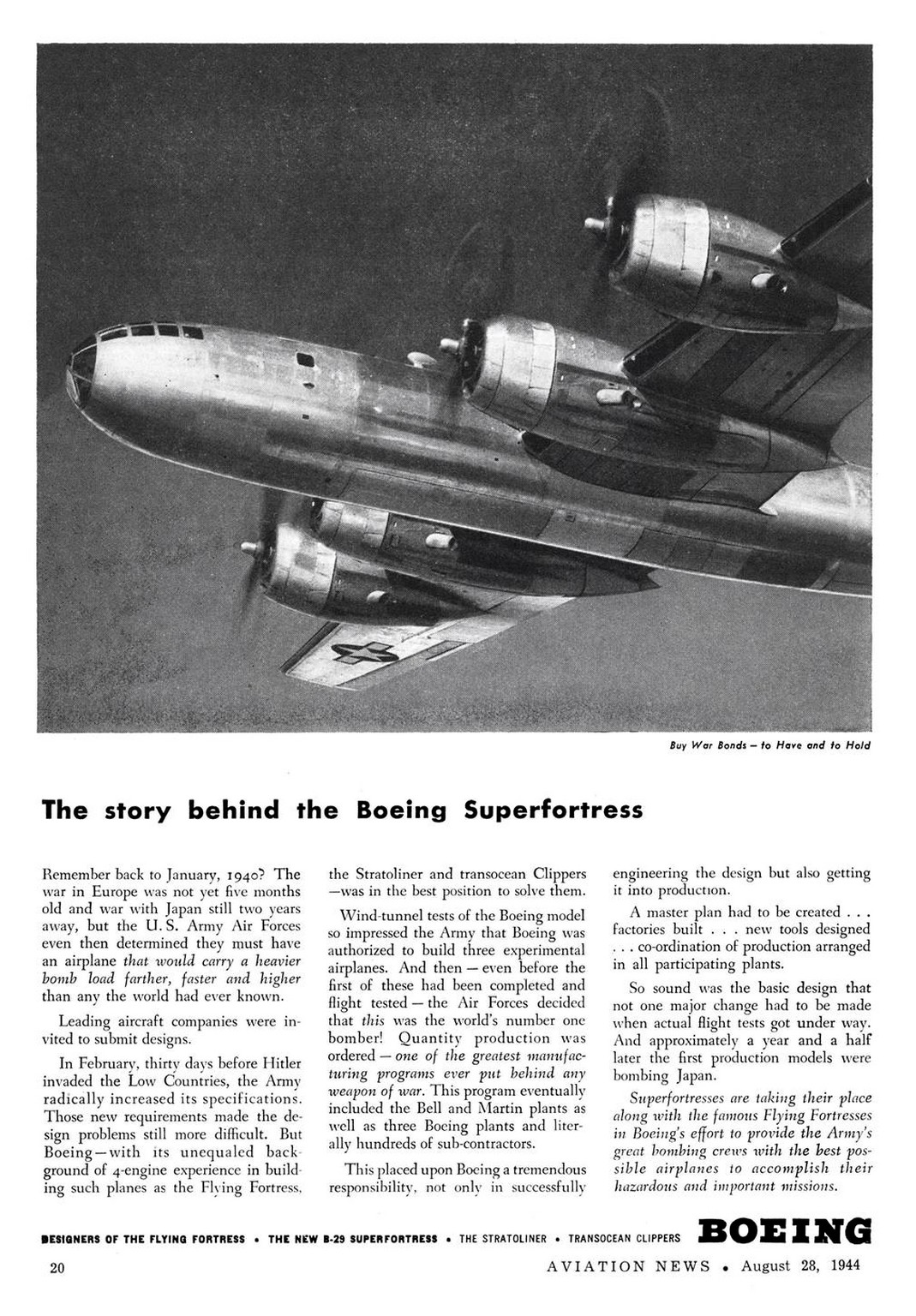 1944 The story behind the Boeing Superfortress. Boeing
