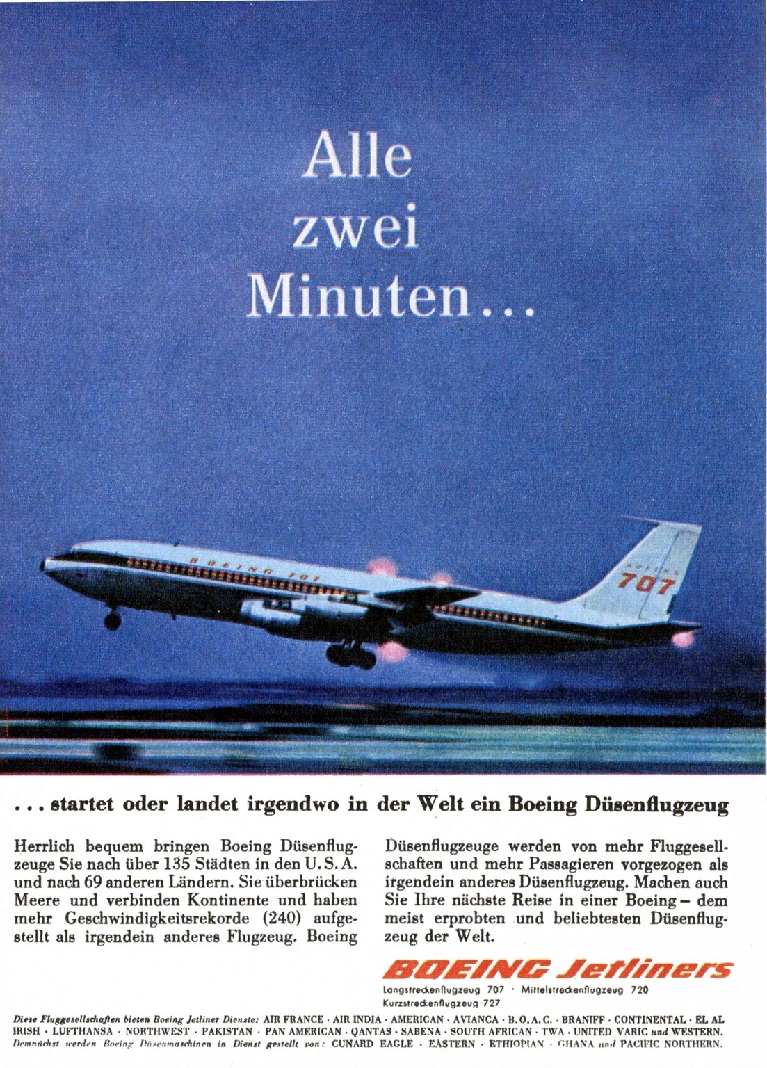 1961 Alle zwei Minuted… startet oder landet irgendwo in der Welt ein Boeing Düsenflugzeug. Boeing Jetliners