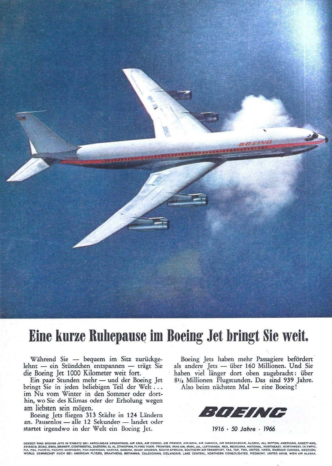 1966 Eine kurze Ruhepause im Boeing Jet bringt Sie weit