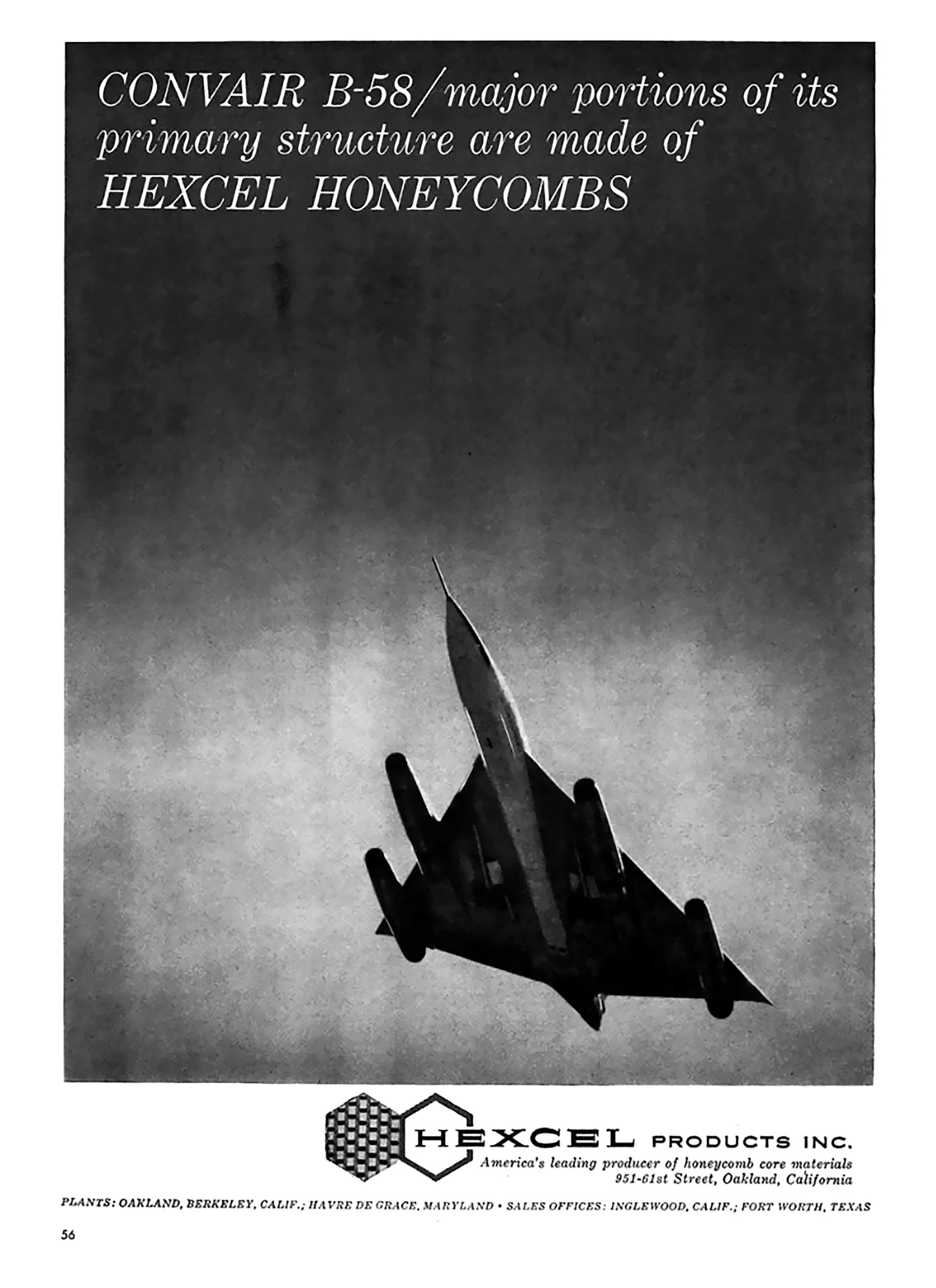 1957 Convair B-58 – major portions of its primary structure are made of Hexcel Honeycombs