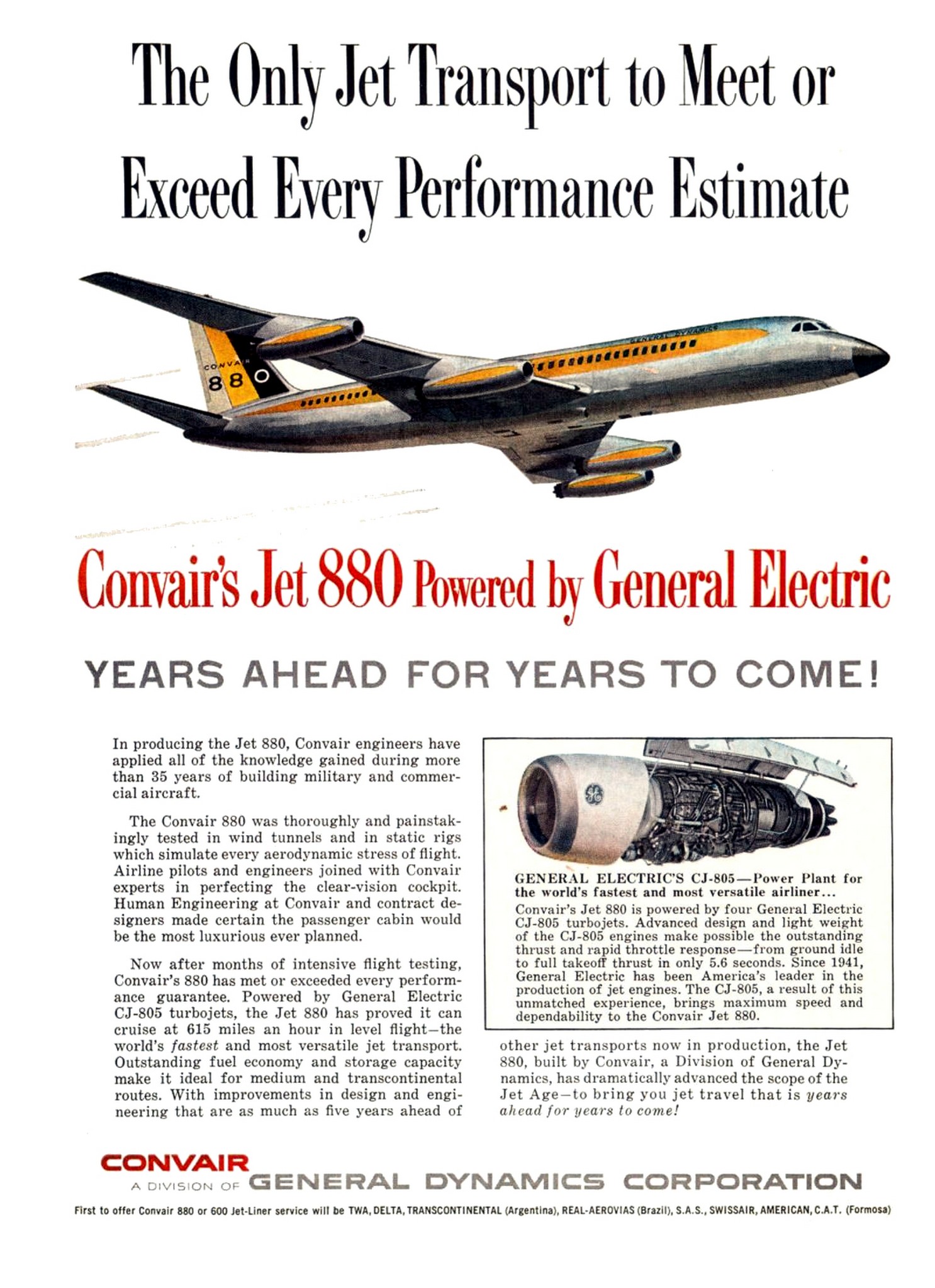 1959 The Only Jet Transport to Meet or Exceed Every Performance Estimate. Convair’s Jet 880 Powered by General Electric