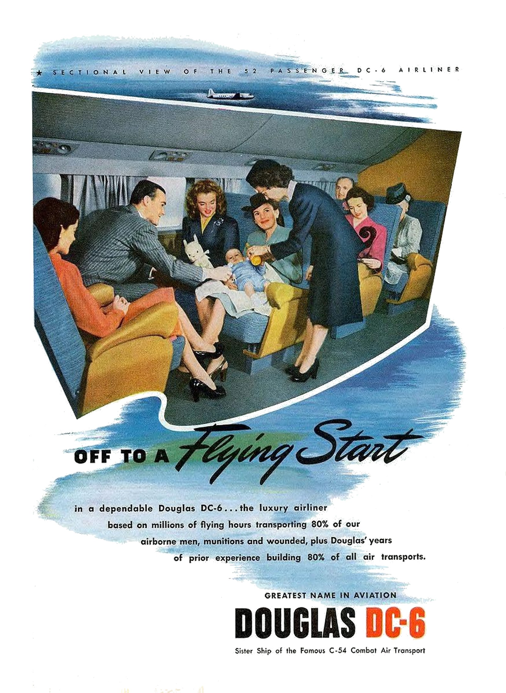 1946 Off To A Flying Start. Greatest Name In Aviation. Douglas DC-6. Sister Ship of the Famous C-54 Combat Air Transport