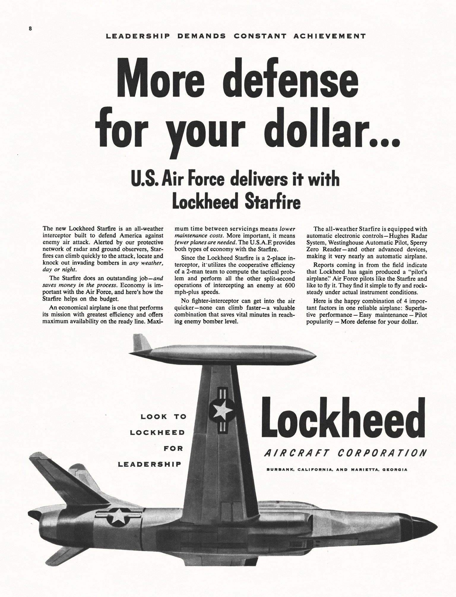 1953 More defense for you dollar… U.S. Air Force delivers it with Lockheed Starfire