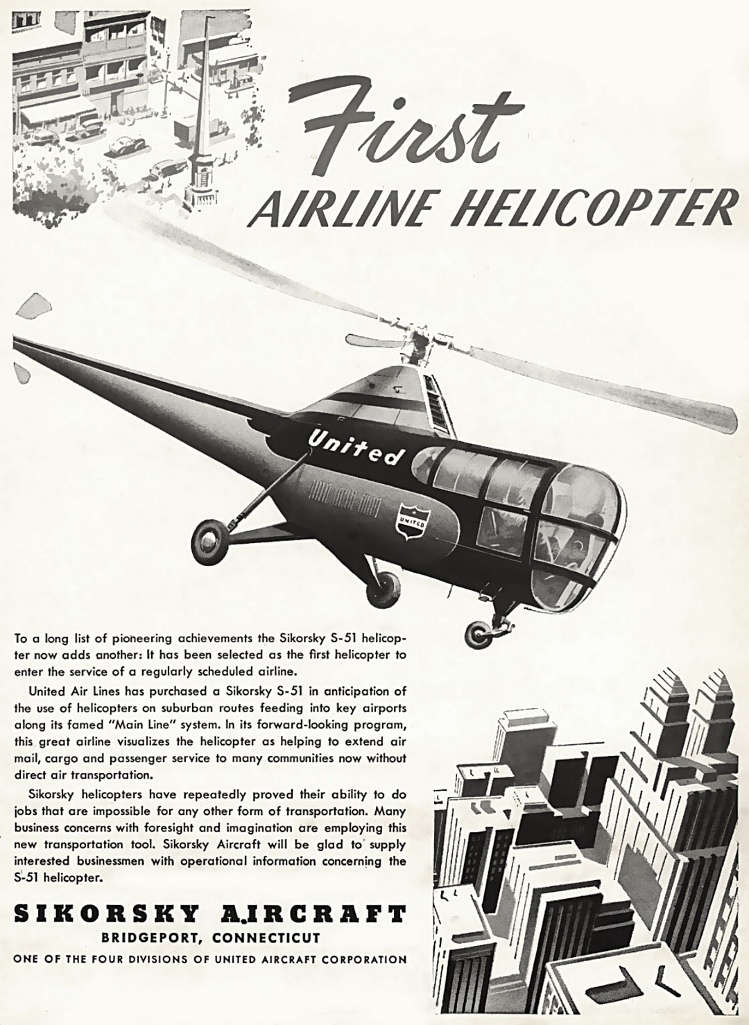 1947 First Airline Helicopter. Sikorsky Aircraft