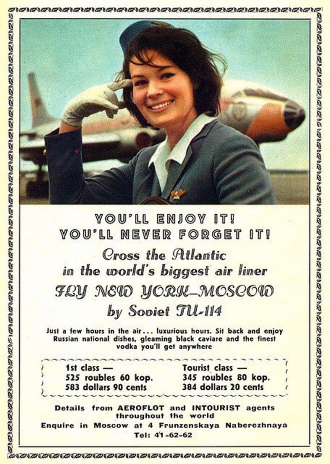 1967 You’ll Enjoy It! You’ll Never Forget It!. Soviet TU-114. Aeroflot