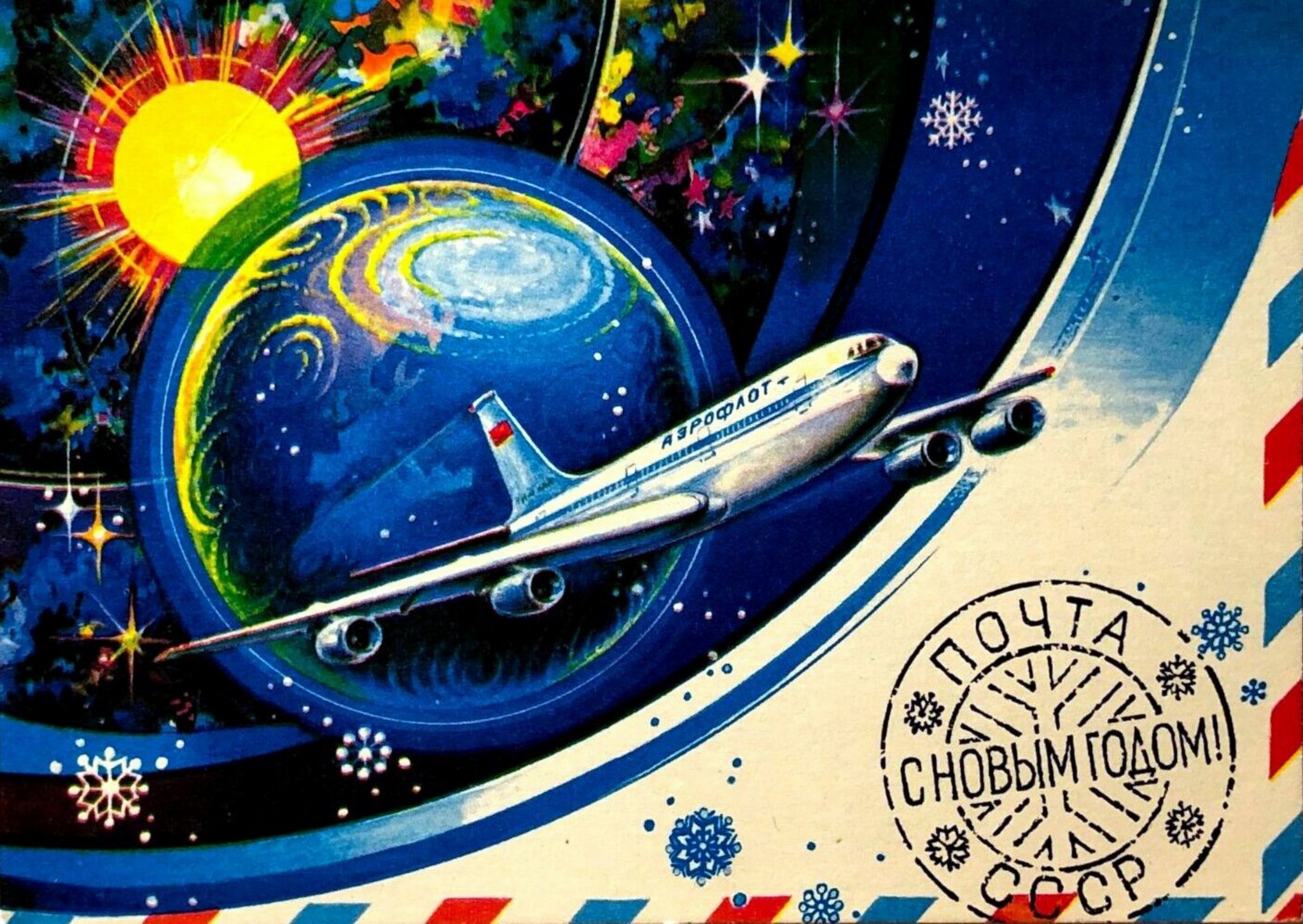 1981 Soviet Space Airplane Aeroflot New Year’s Greeting Postcard