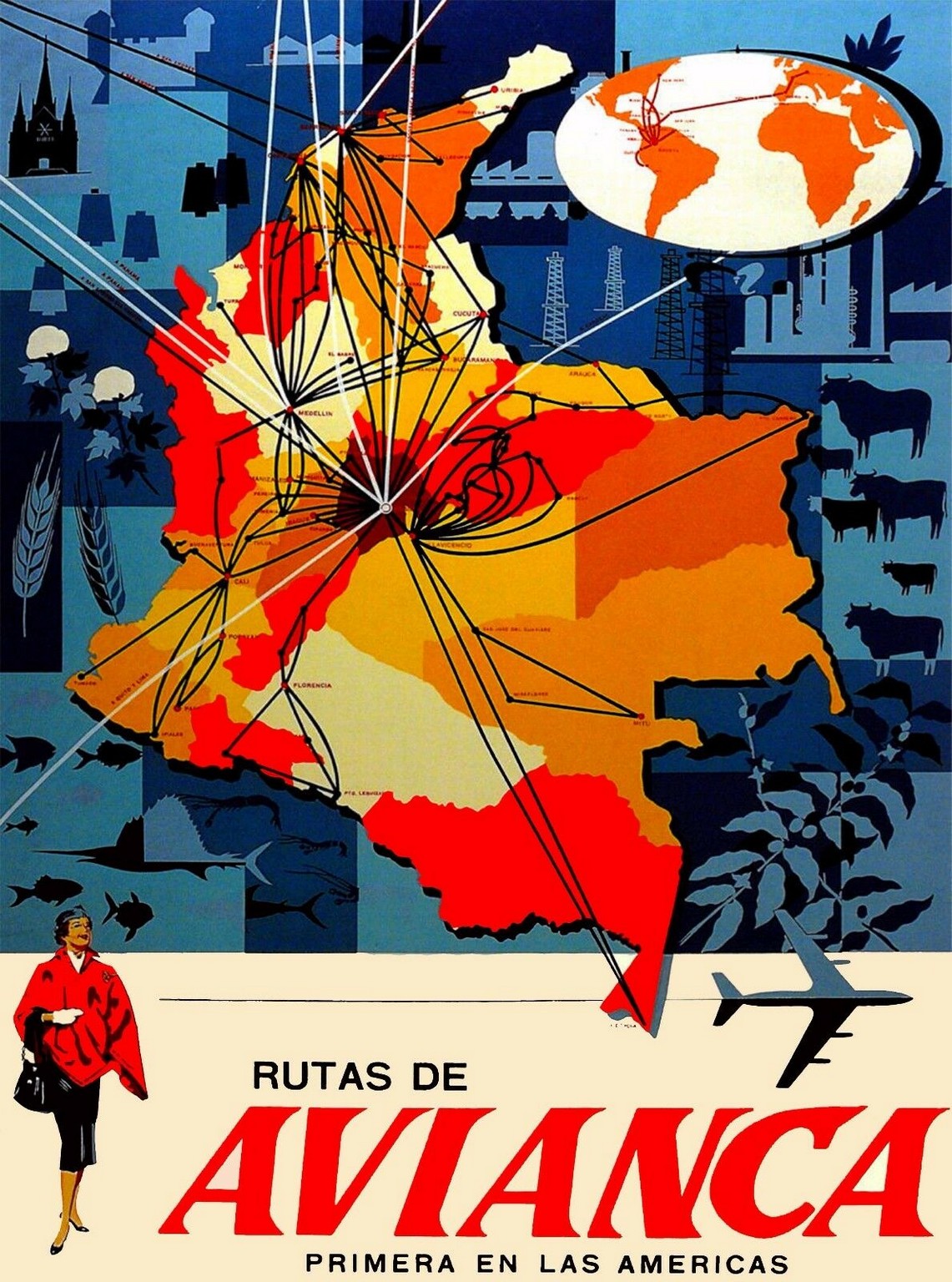 1961 Rutas De Avianca. Primera En Las Americas