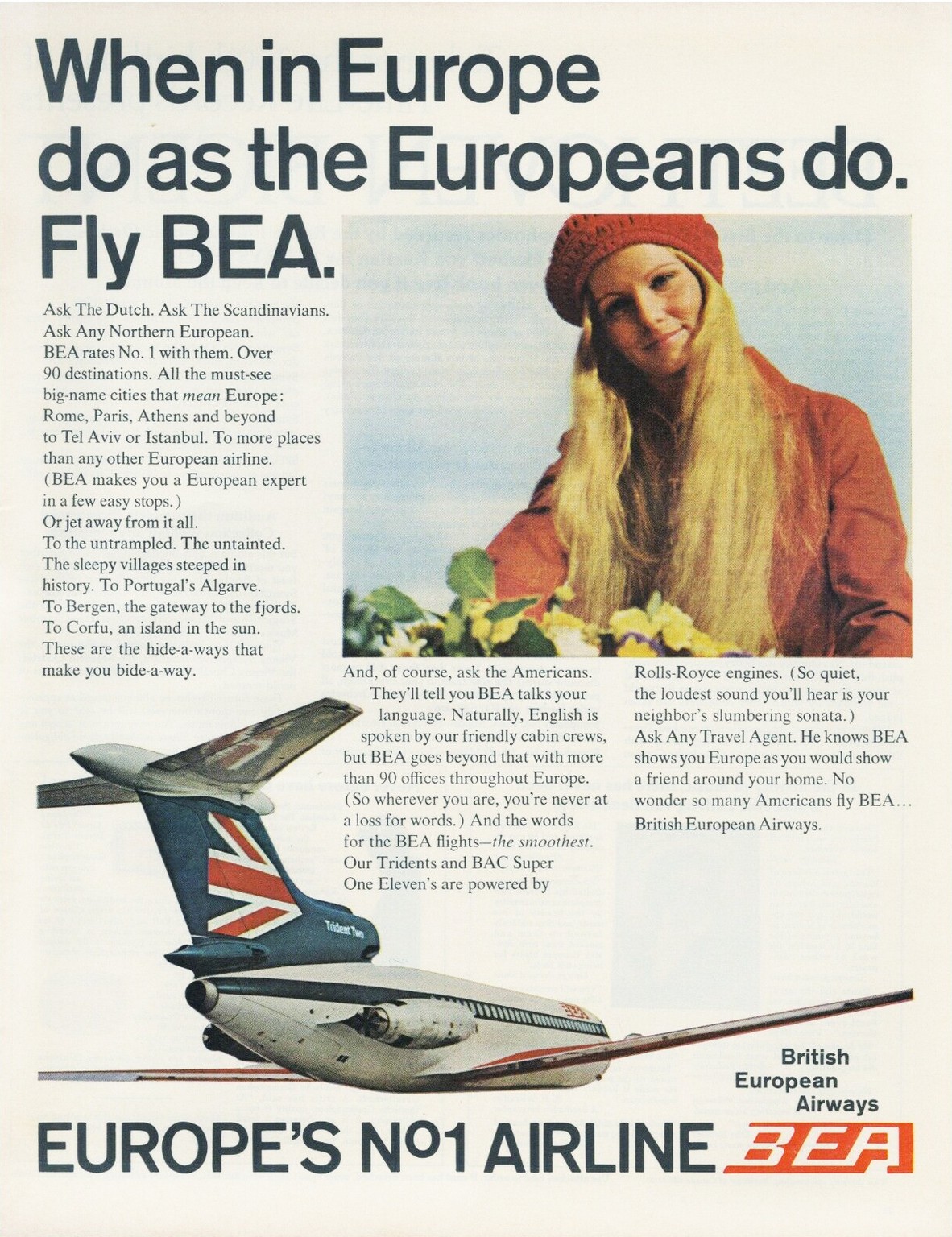 1971 When in Europe do as the Europeans do. Fly BEA. Europe’s No1 Airline BEA