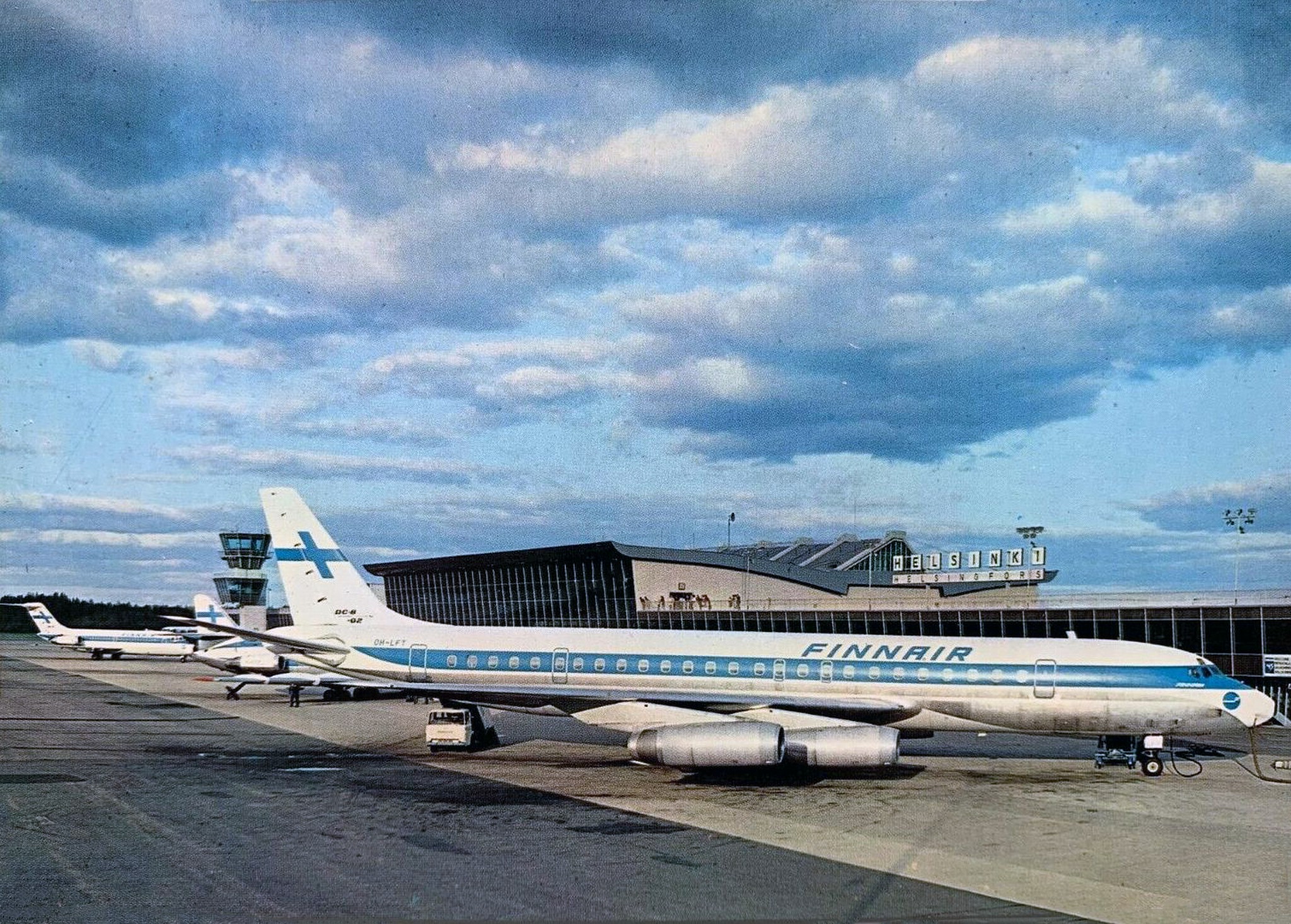 1969 Finnair Airlines Douglas DC-8 Aircraft Postcard Helsinki Airport