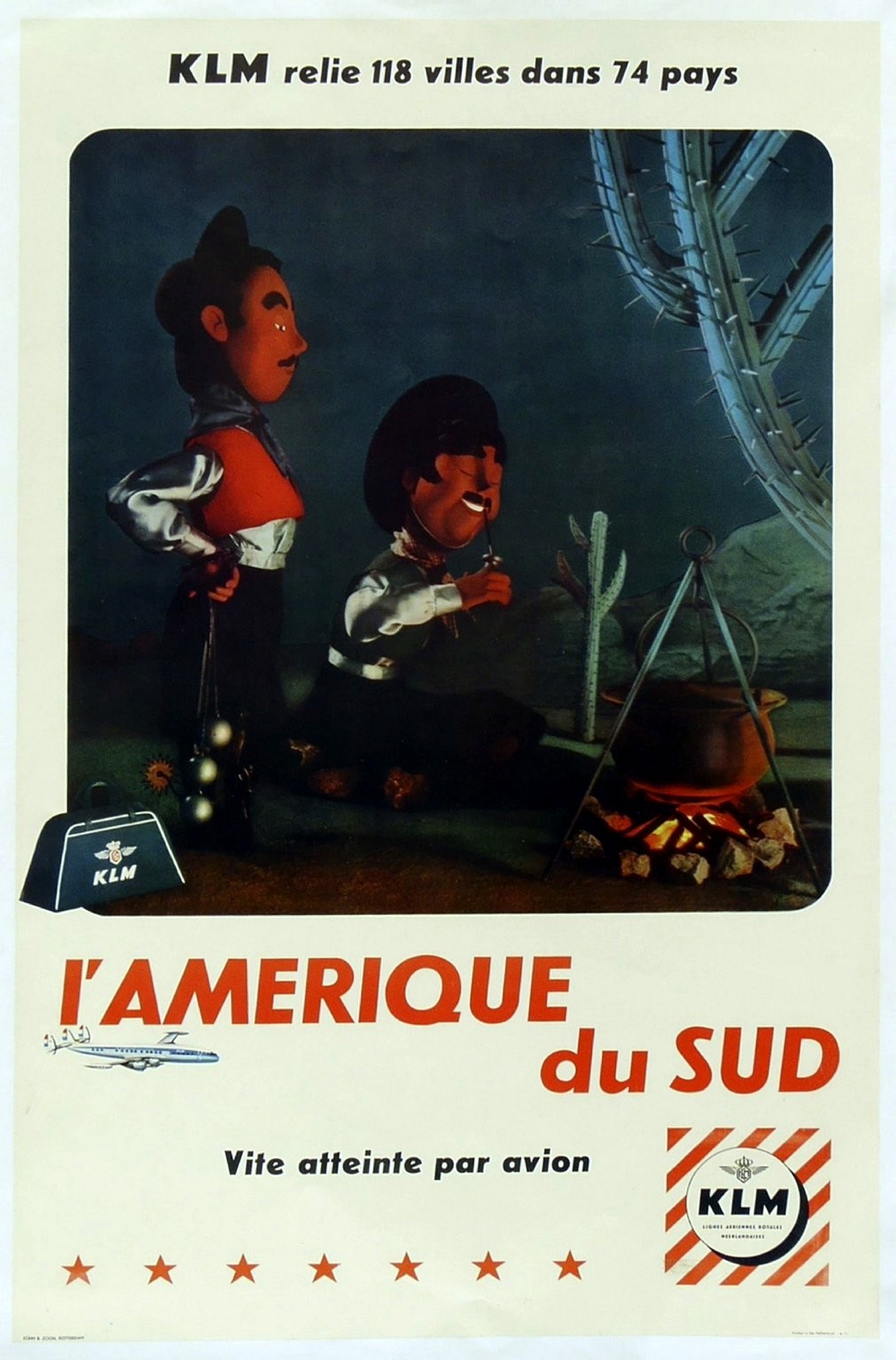 1955 KLM relie 118 villes dans 74 pays. ‘Amerique du Sud. Vite atteinte par avion