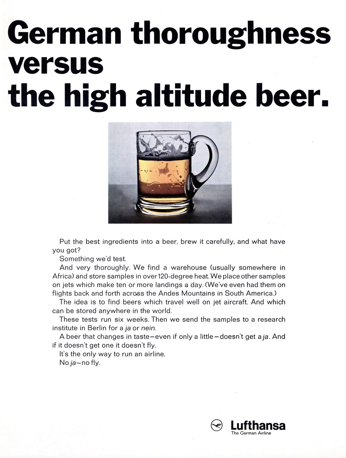 1967 German thoroughness versus the high altitude beer. Lufthansa