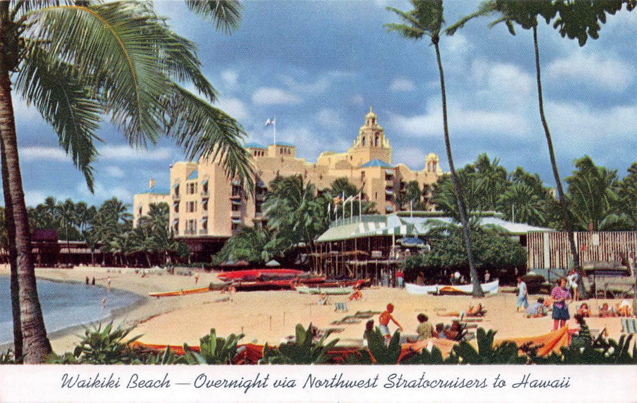 1952 Waikiki Beach - Overnight via Northwest Stratocruisers to Hawaii
