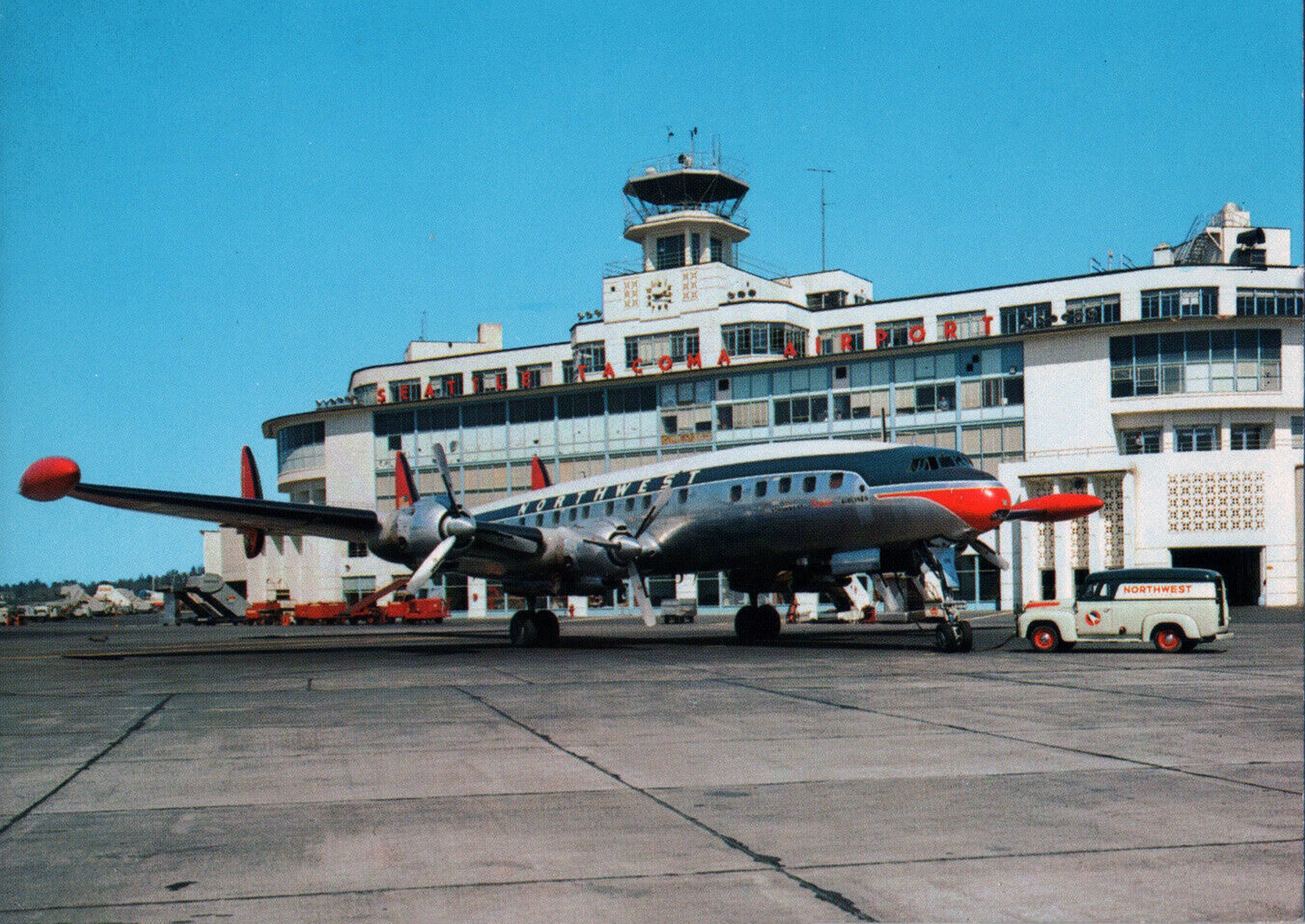 1955 Northwest Orient Super Constellation at Seattle Postcard