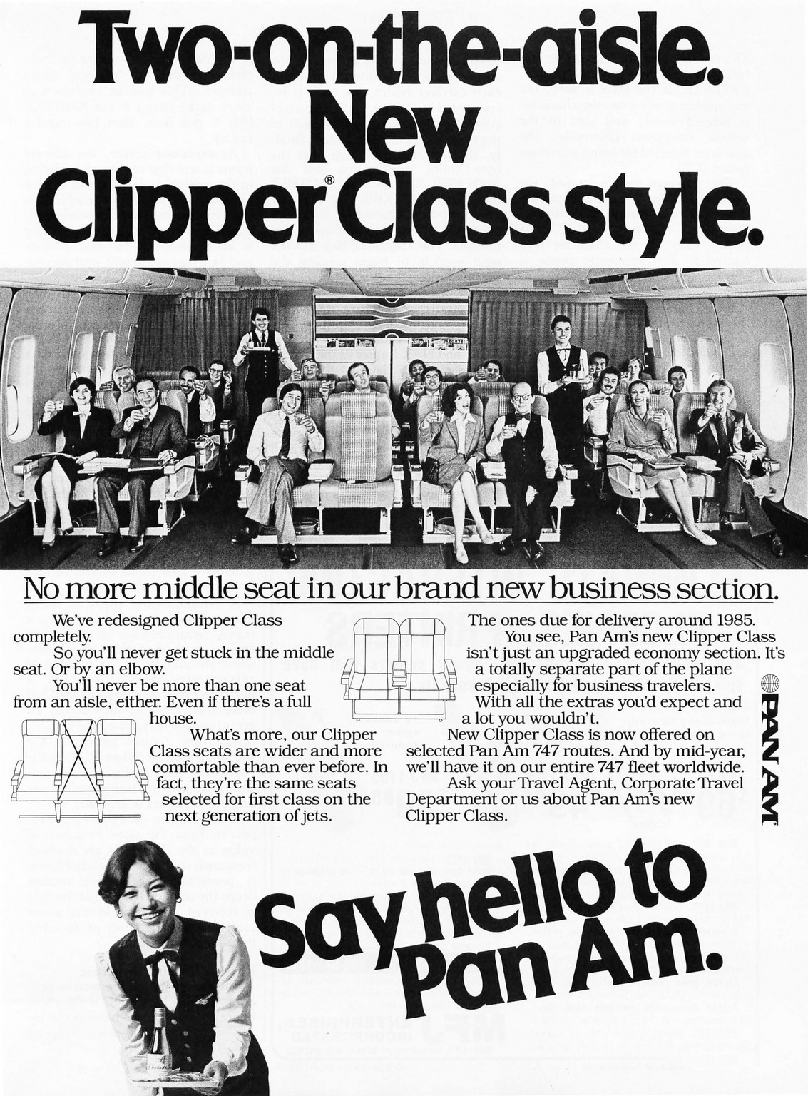 1981 Two-on-the-aisle. New Clipper Class style. Say hello to Pan Am
