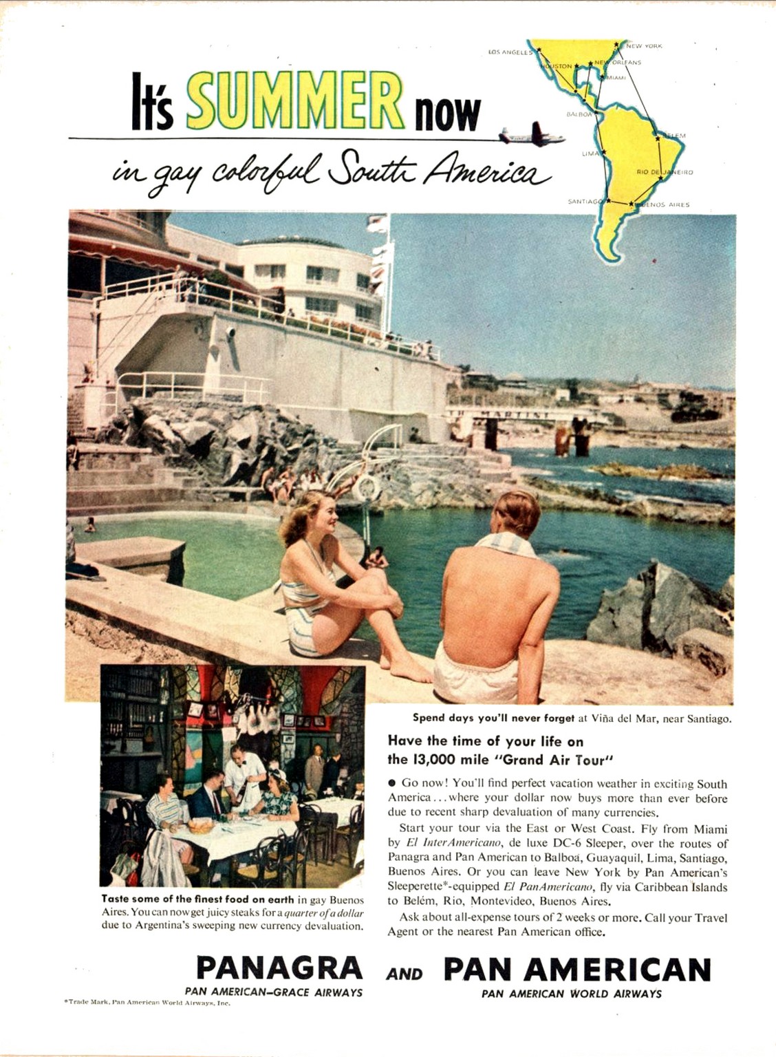 1950 It’s Summer now in gay colorful South America. Panagra and Pan American