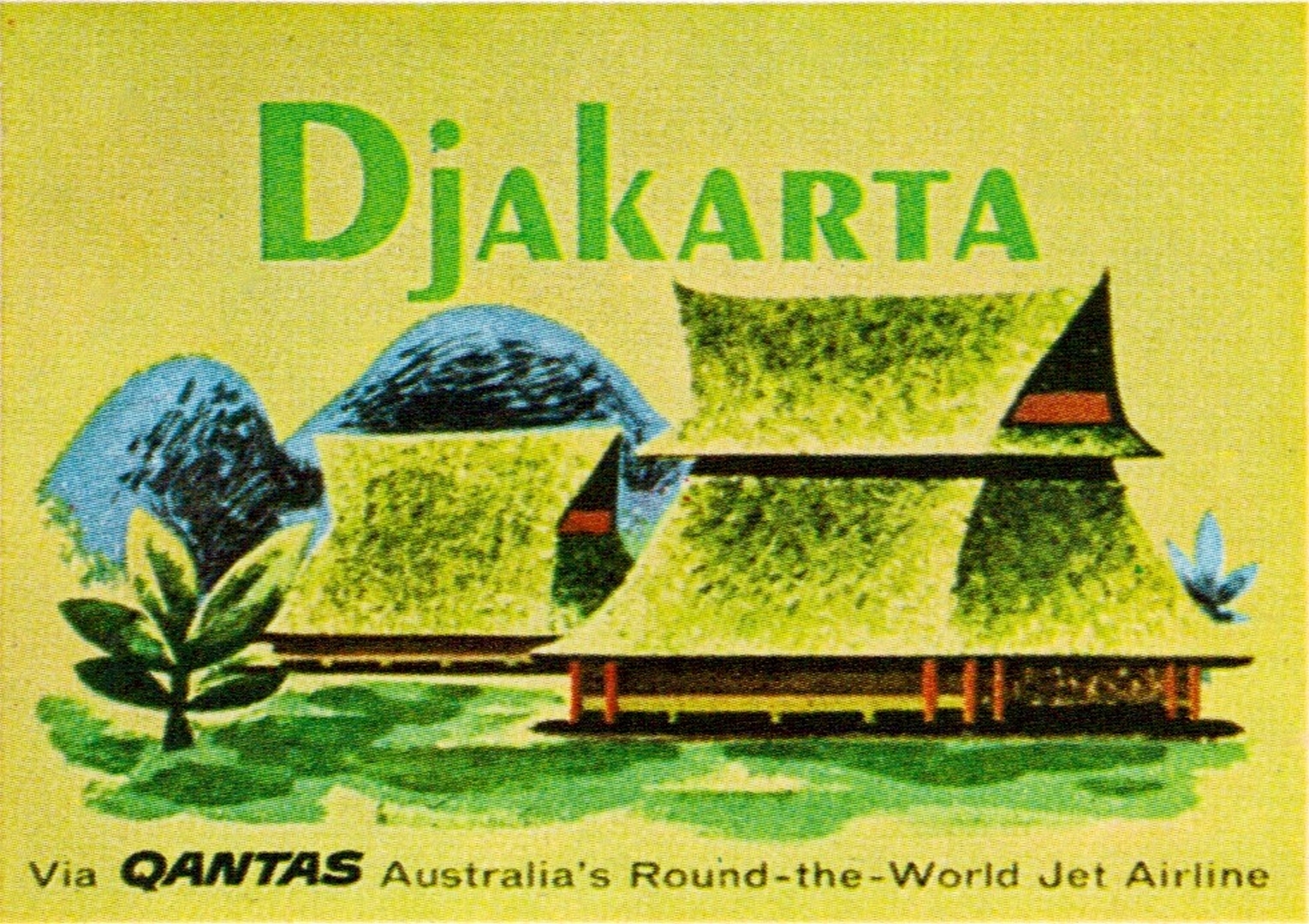 1960 Djakarta Via Qantas Australia's Round-the-World Jet Airline