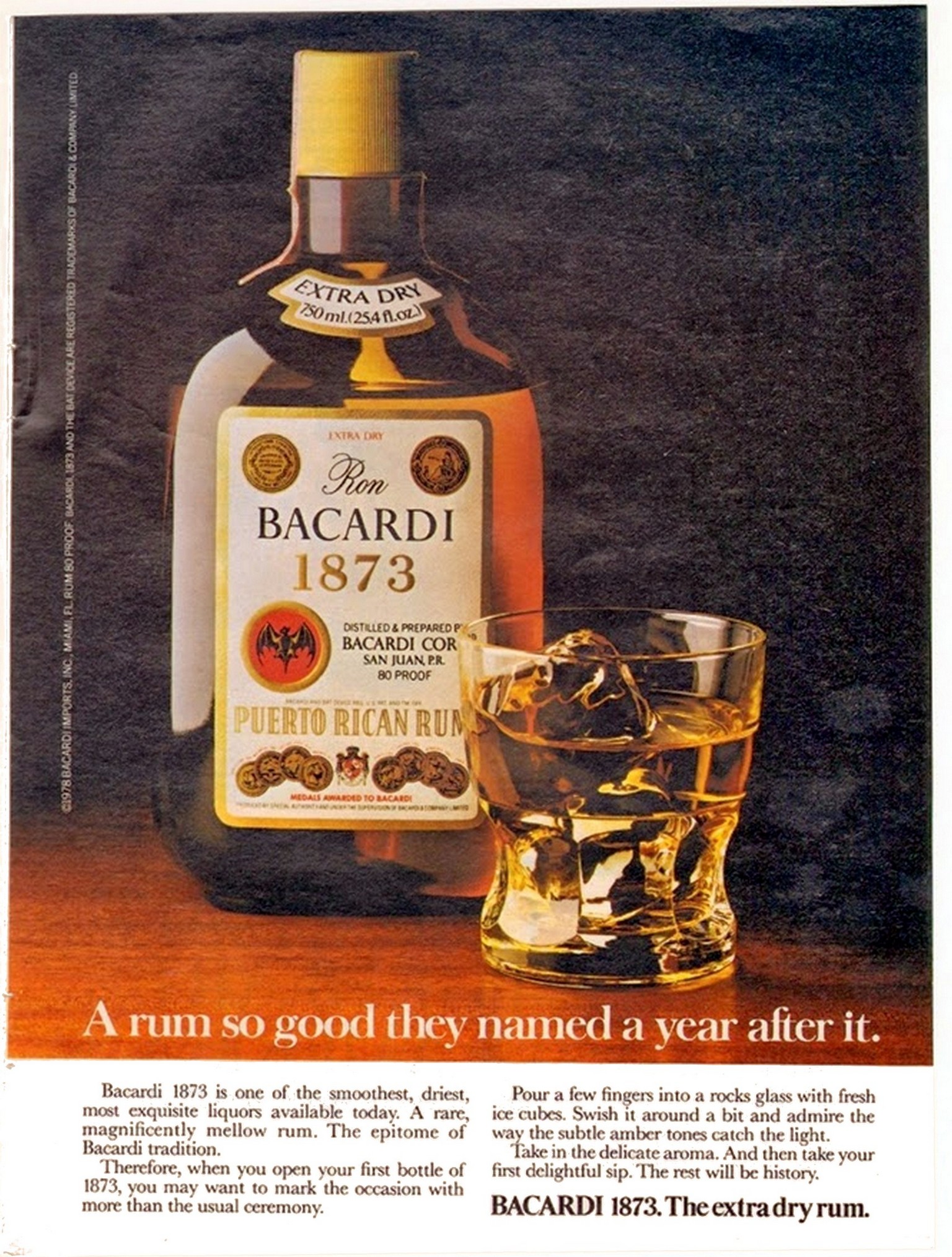 1979 Bacardi 1873. The extra dry rum. A rum so good they named a year after it