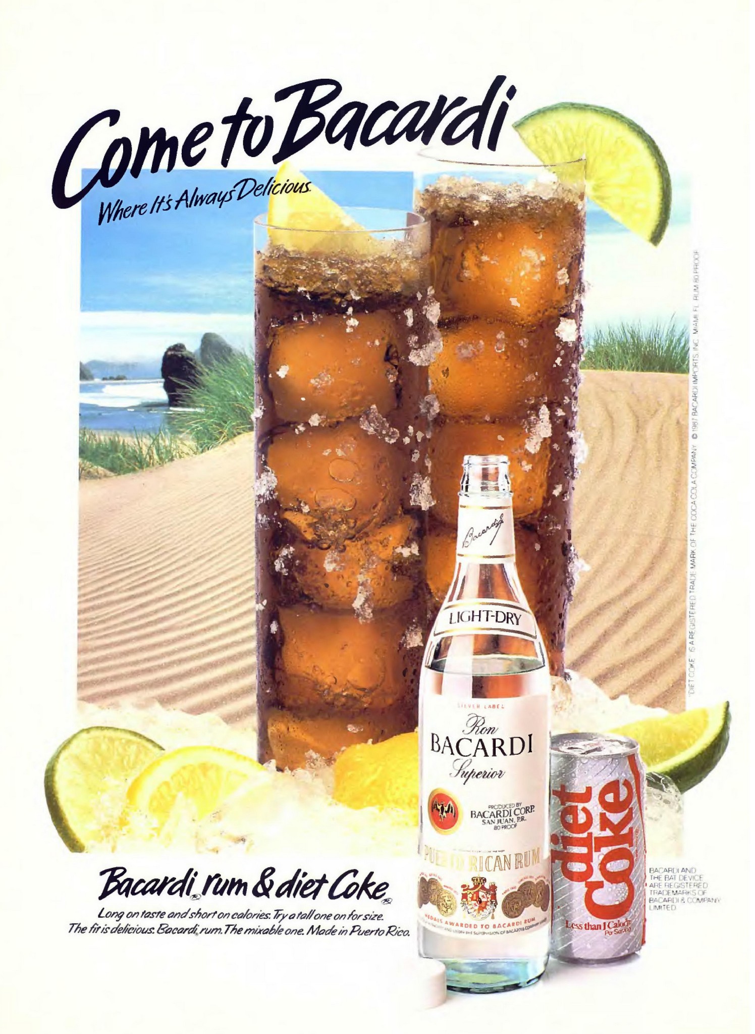 1989 Come to Bacardi. Where It’s Always Delicious. Bacardi rum & diet Coke