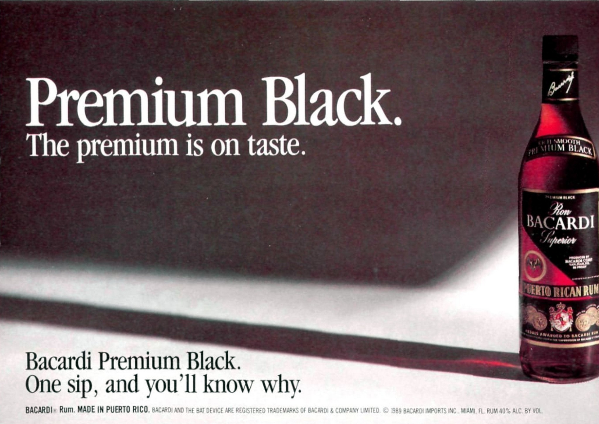 1989 Premium Black. The premium is on taste. Bacardi