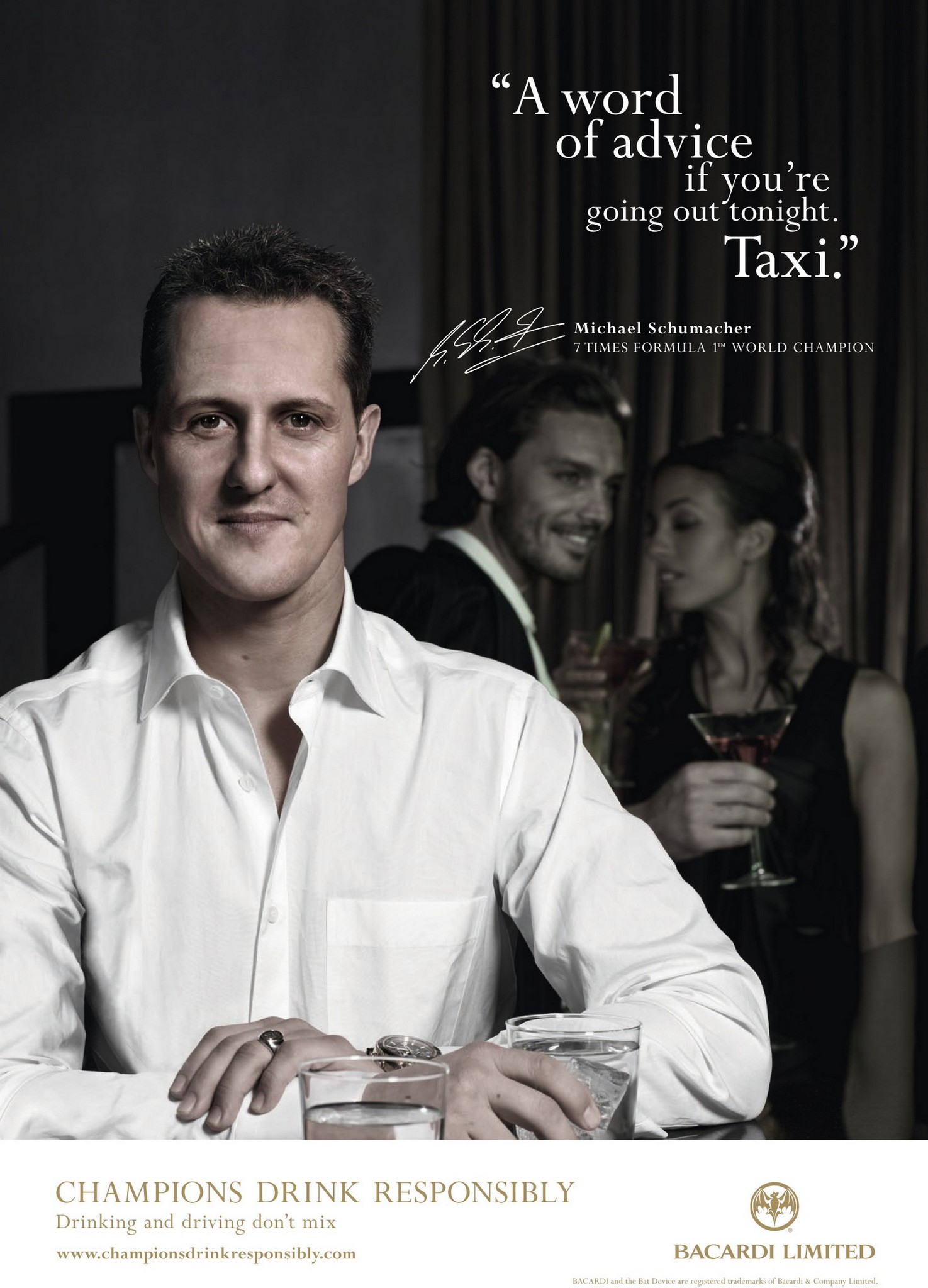 2008 ‘A word of advice if you’re going out tonight. Taxi’ Michael Schumacher. Bacardi.