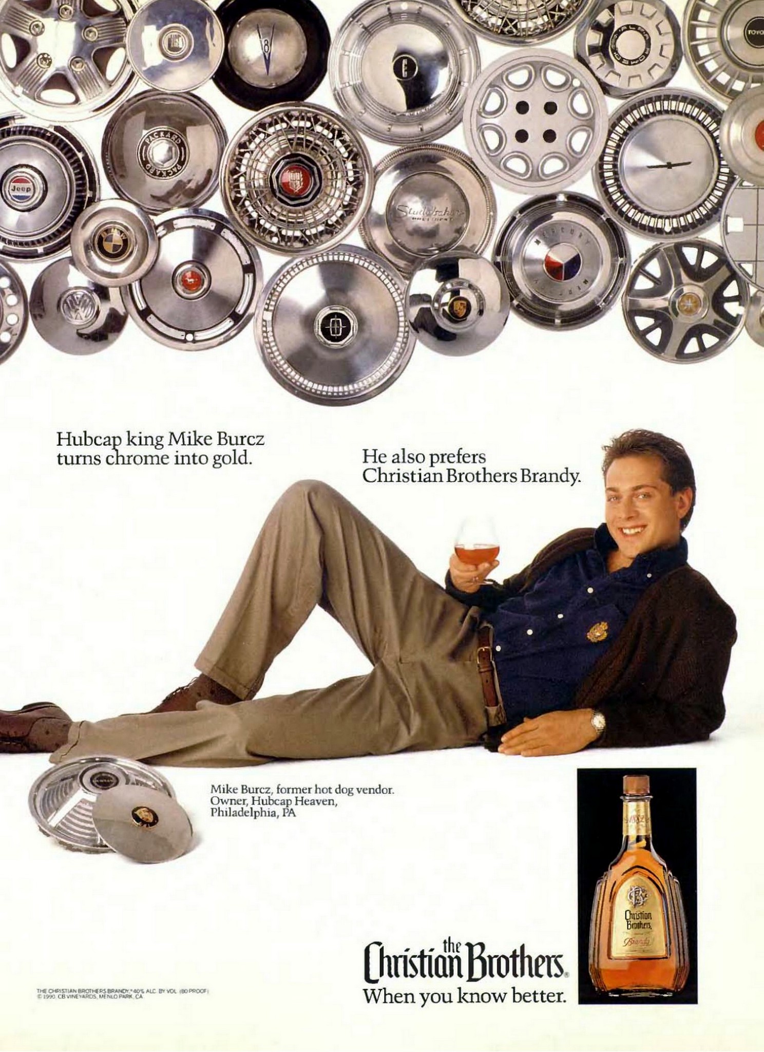 1990 Hubcap king Mike Burcz turns chrome into gold. He also prefers Christian Brothers Brandy