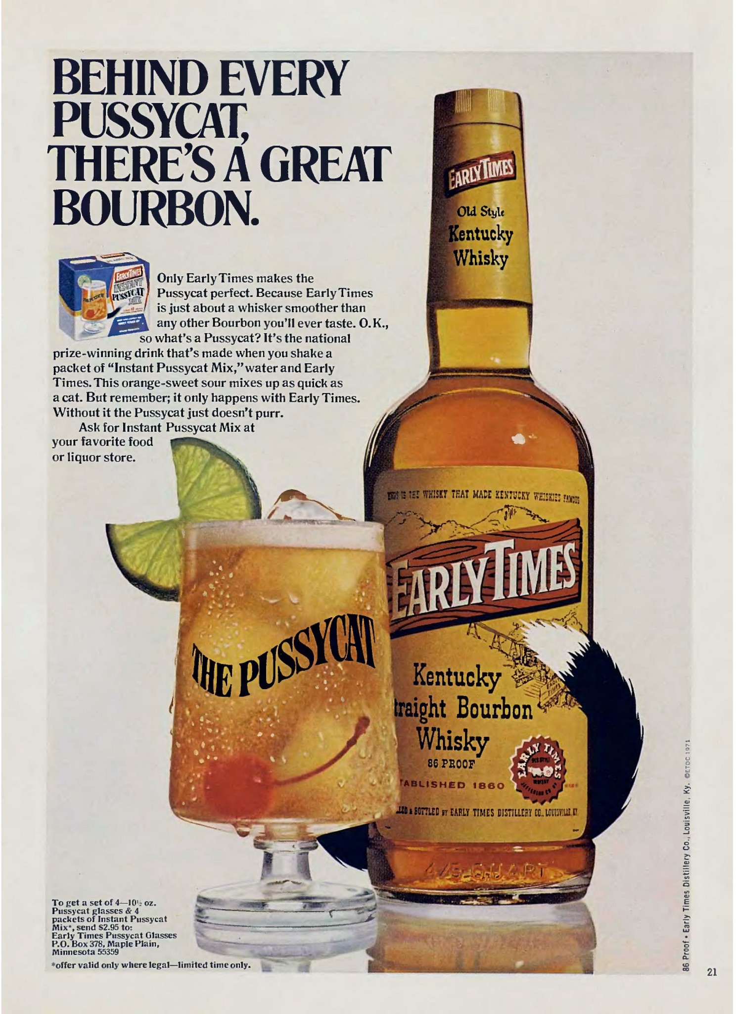 1971 Behind Every Pussycat, There’s A Great Bourbon. The Pussycat. Early Times