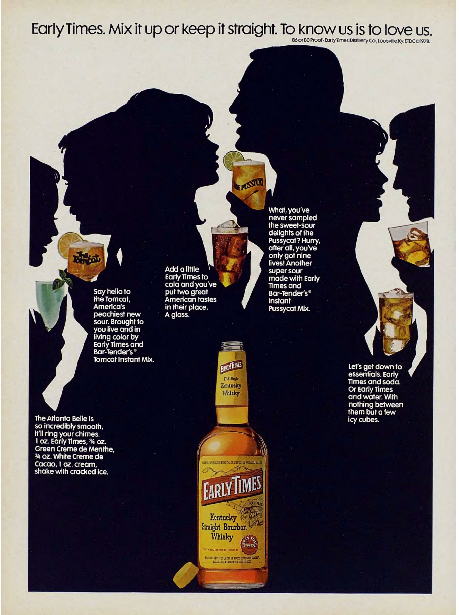 1978 Early Times. Mix it up to keep it straight. To know us is to love us