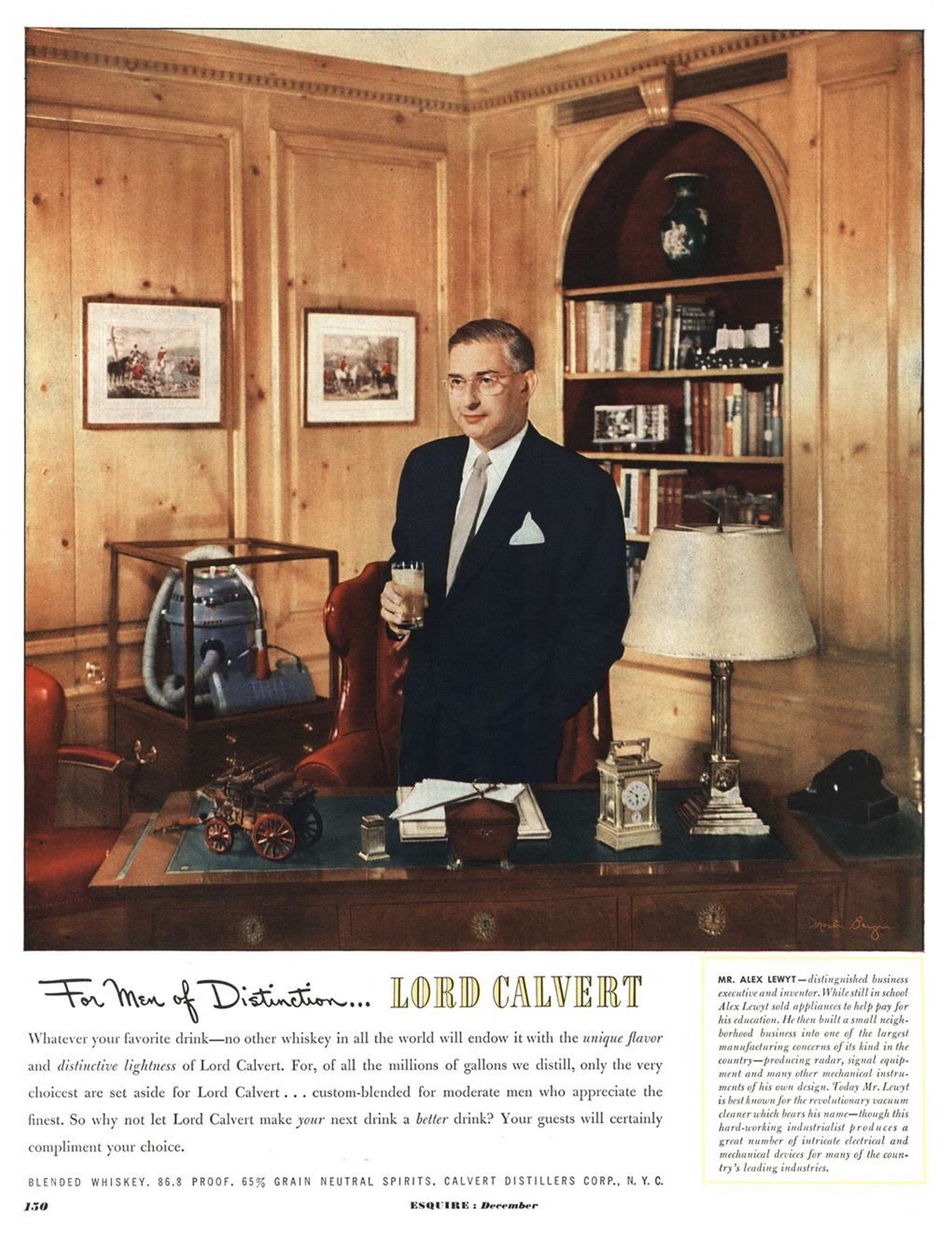 1950 For men of Distinction… Lord Calvert.. Mr. Alex Lewyt