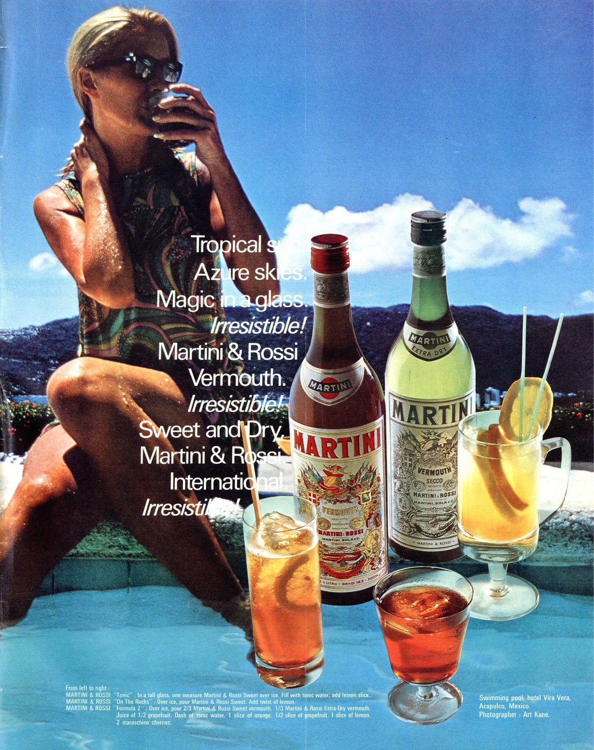 1970 Tropical sun. Azure Skies. Magic in a glass. Irresistible! Martini & Rossi Vermouth