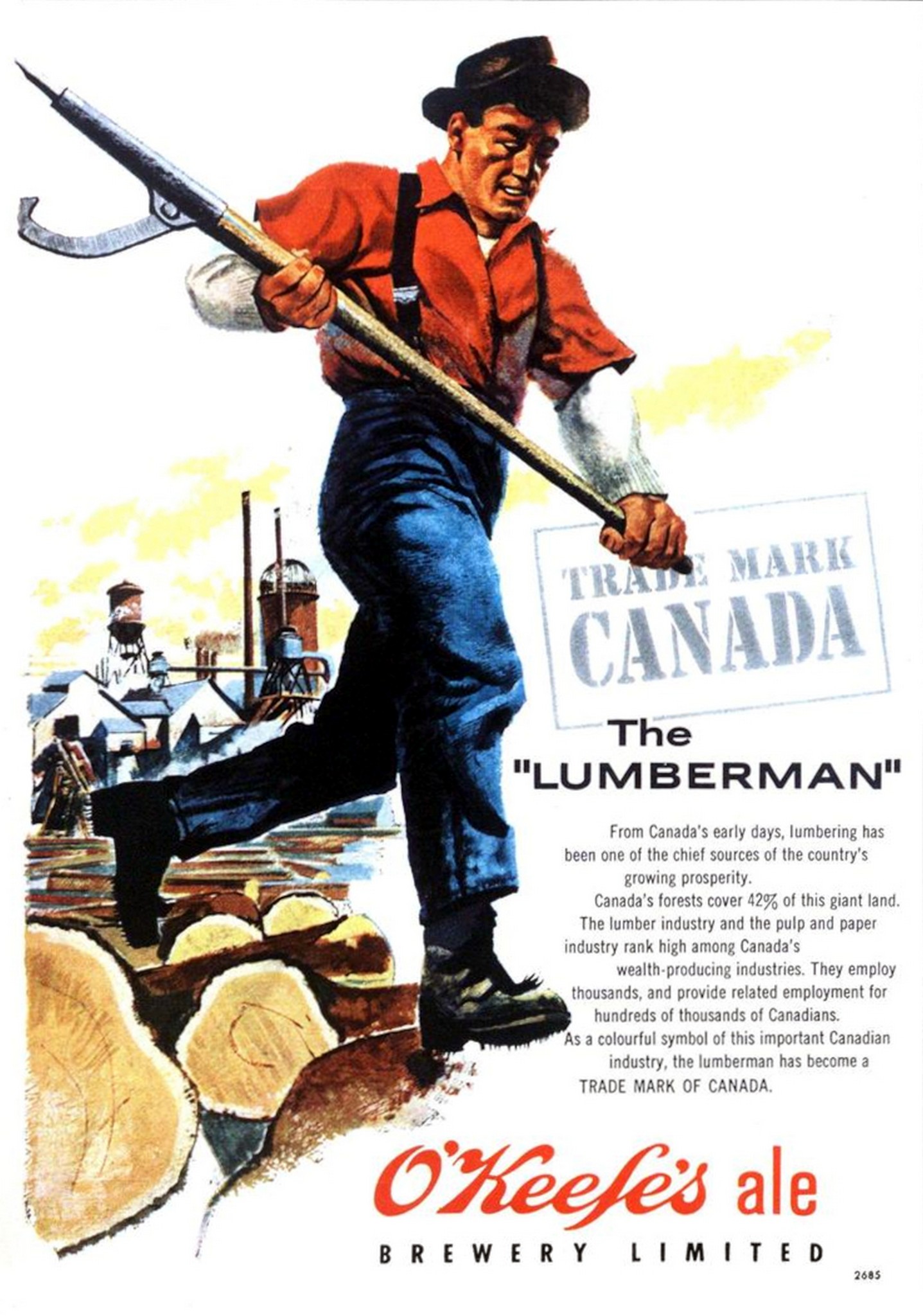 1956 Trade Mark Canada. The ‘Lumberman’ O’Keefe’s ale
