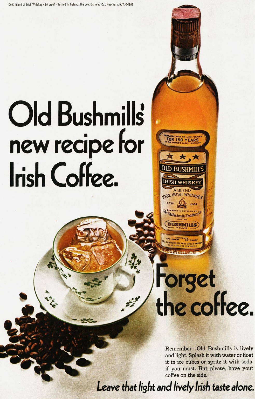 1968 Old Bushmills’ new recipe for Irish Coffee. Forget the coffee