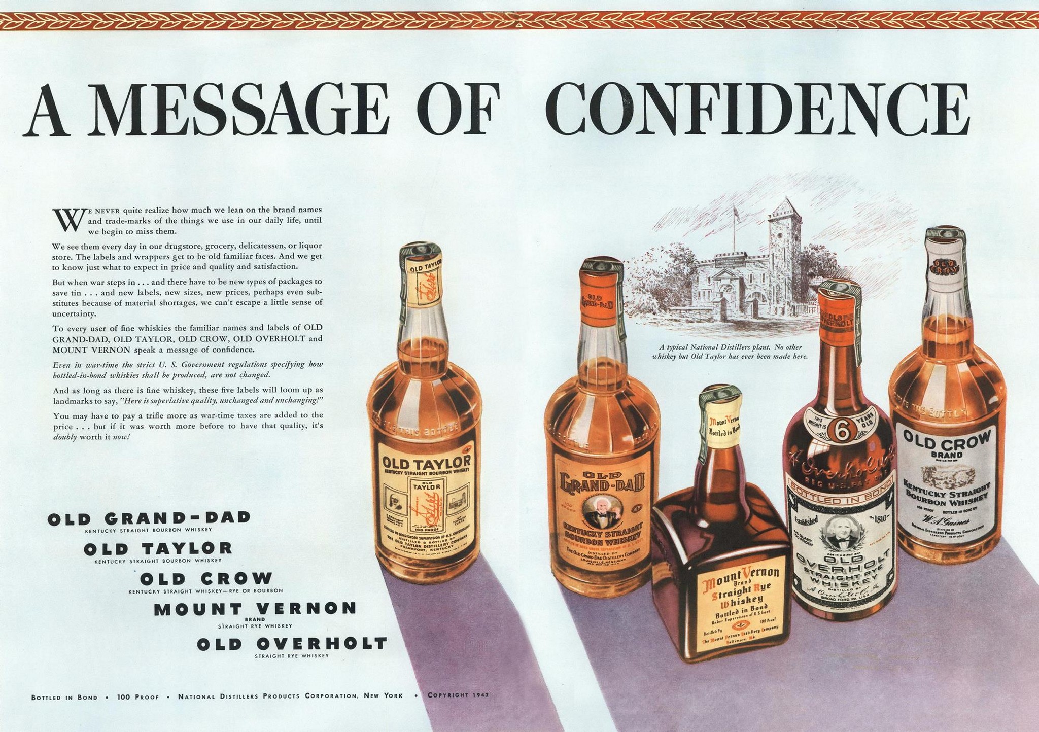 1942 A Message OF Confidence. Old Grand-Dad, Old Taylor, Old Crow, Mount Vernon and Old Overholt