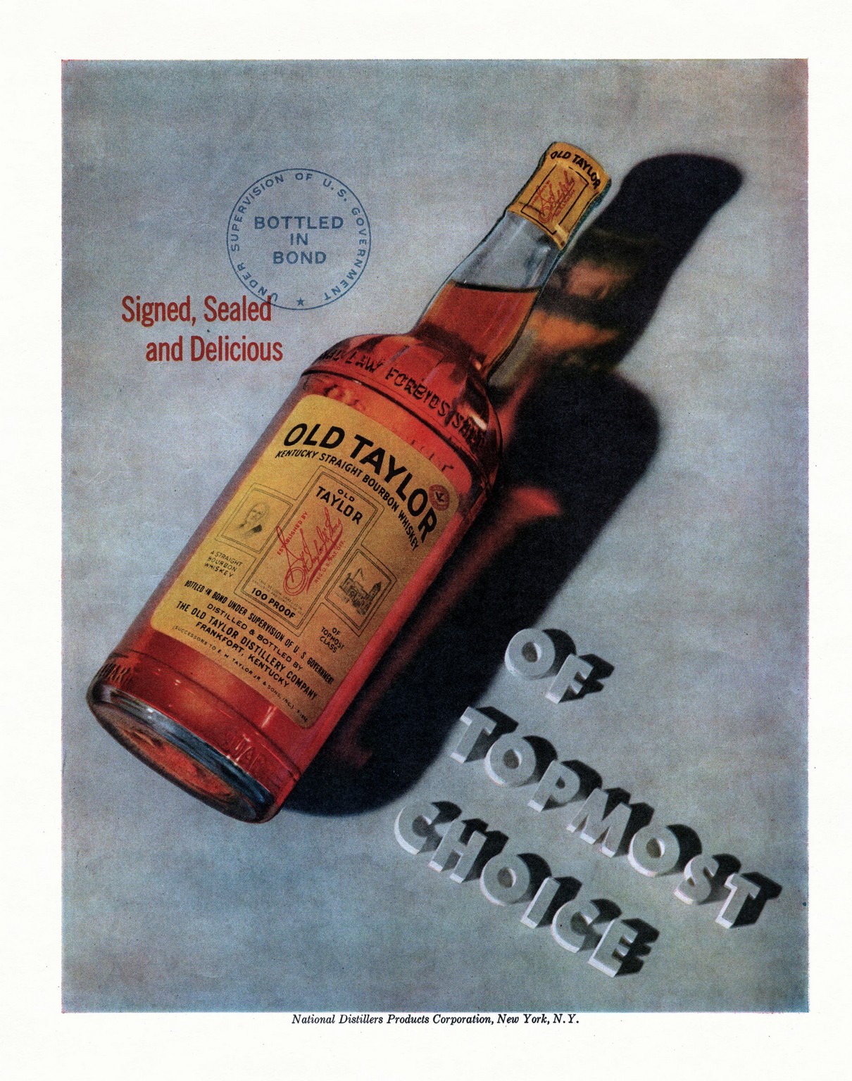1948 Signed, Sealed and Delicious Old Taylor. Of Topmost Choice