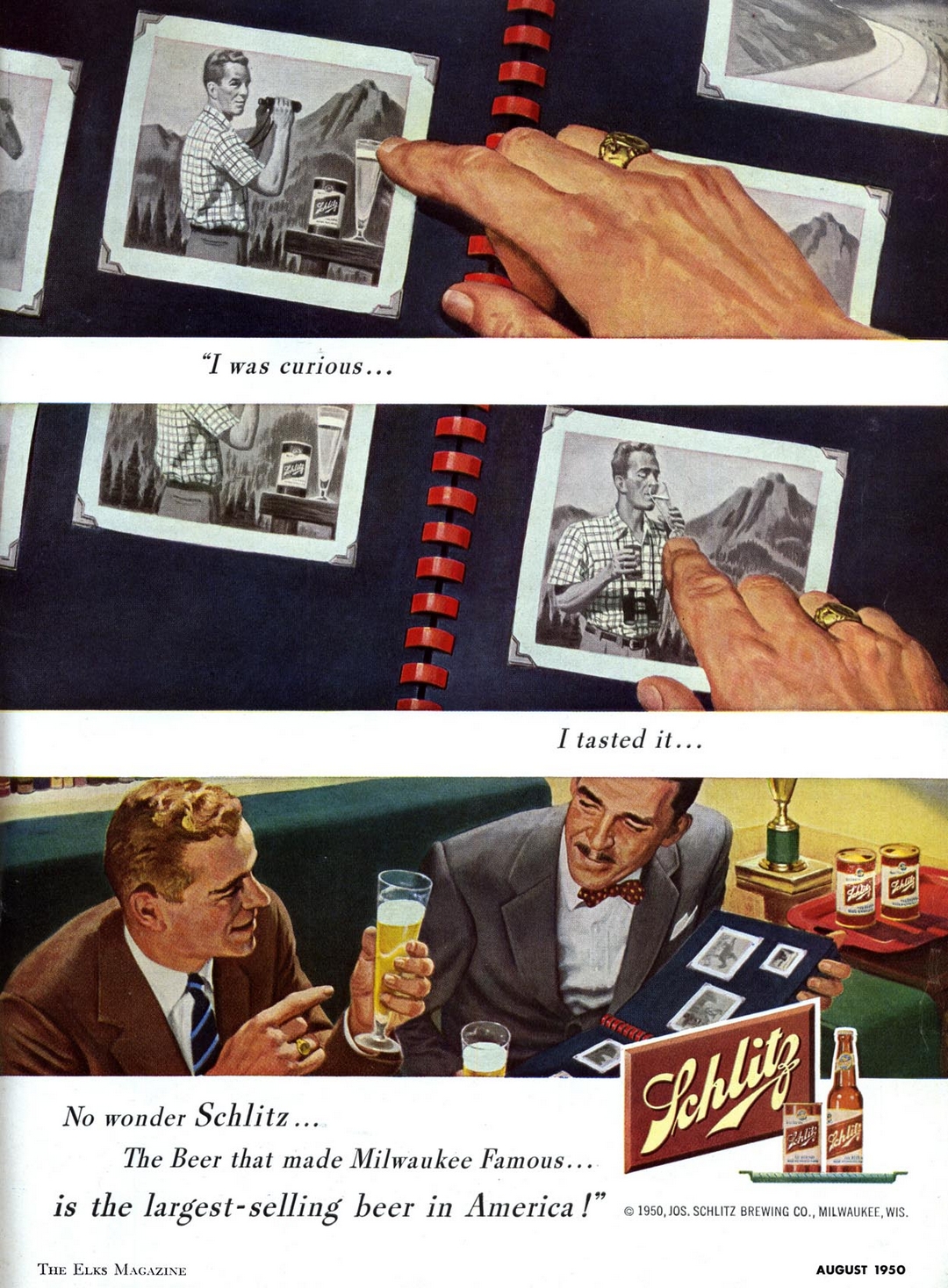 1950 'I was curious... I tasted it... Now I know why Schlitz is... The Beer that made Milwaukee Famous!' (4)