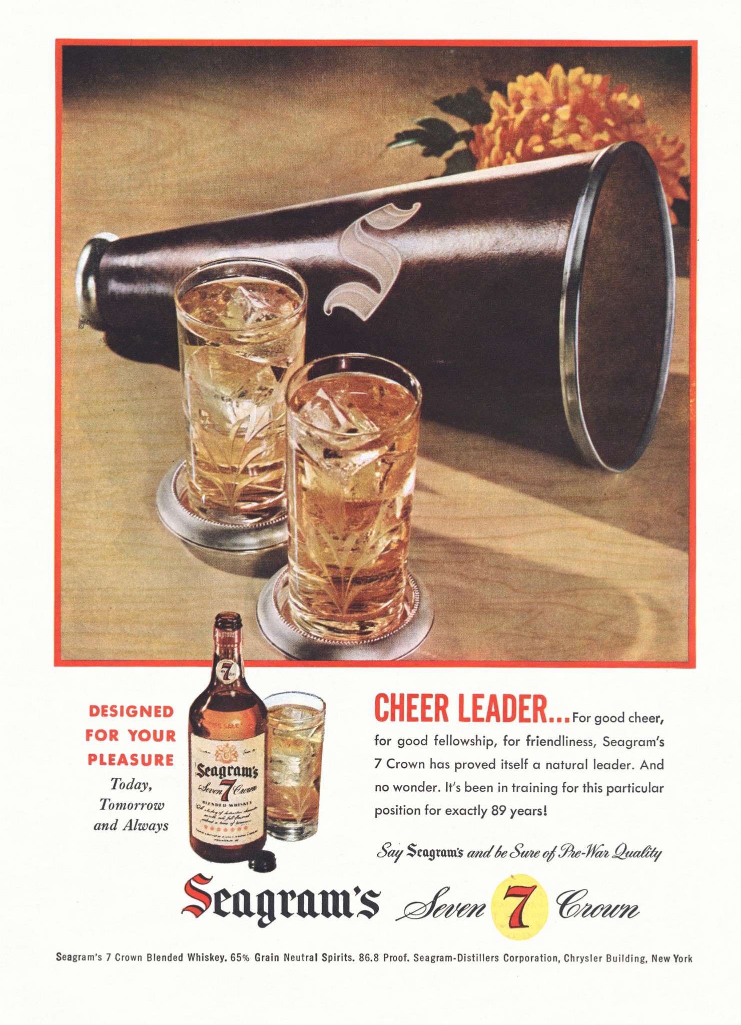 1946 Cheer Leader… Designed For Your Pleasure. Seagram’s Seven 7 Crown
