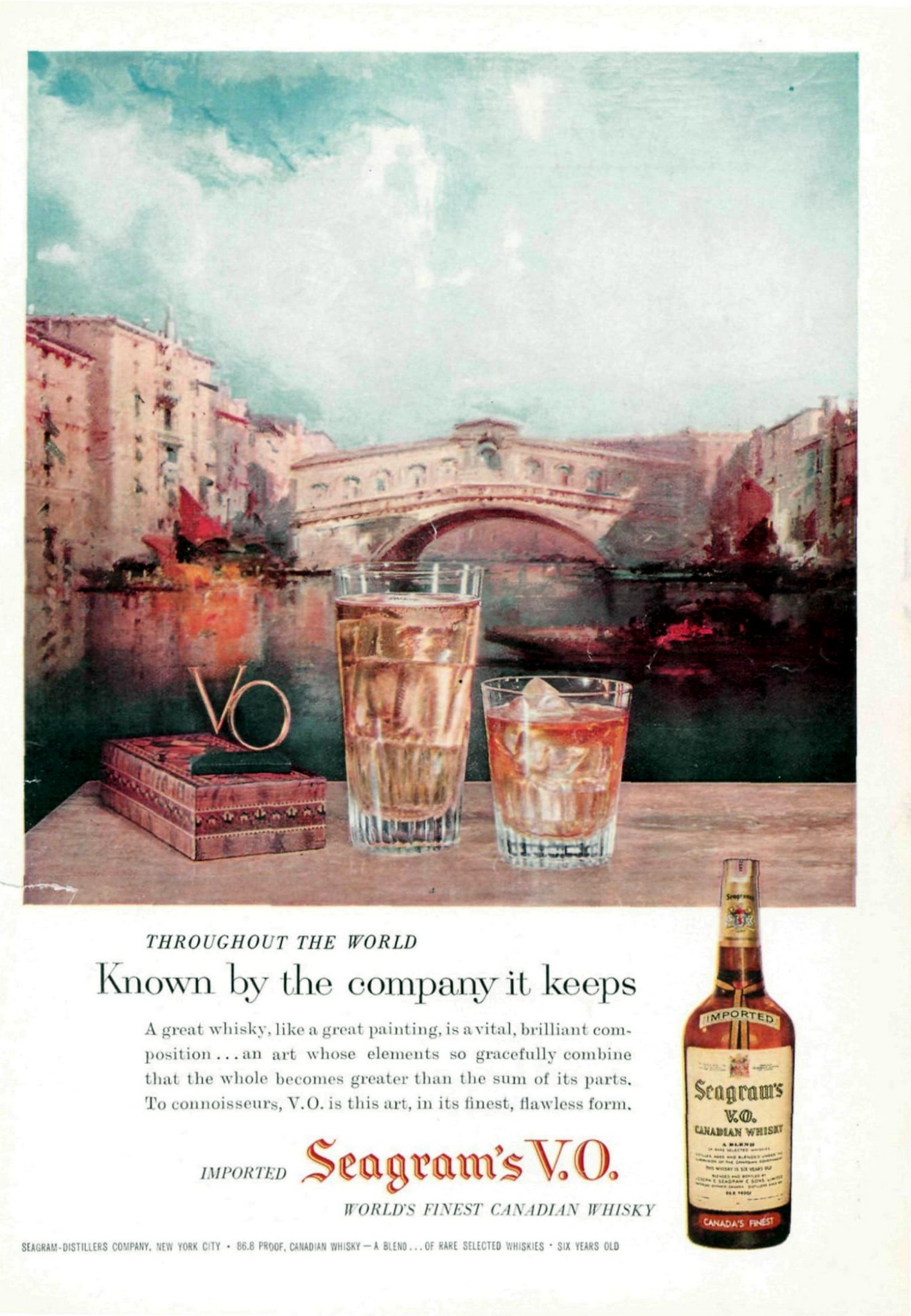 1958 Throughout The World. Known by the company it keeps. Seagram’s V.O.