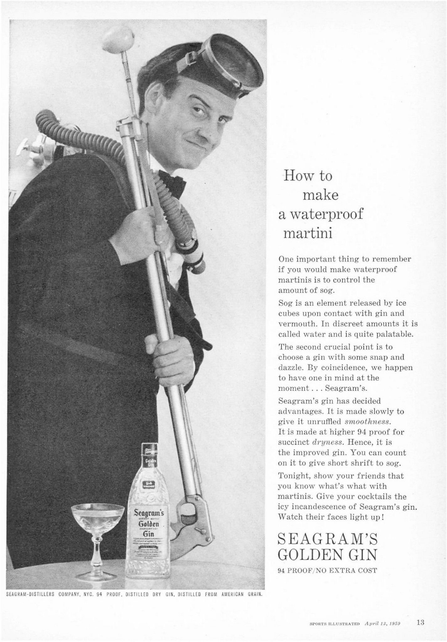 1959 How to make a waterproof martini. Seagram’s Golden Gin