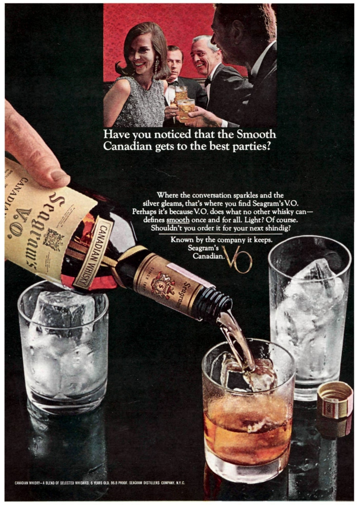 1965 Have you noticed that the Smooth Canadian gets to the best parties. Seagram’s V.O.