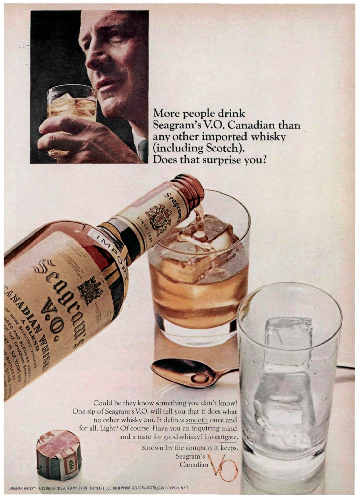 1965 More people drink Seagram’s V.O. Canadian than any other imported whisky (including Scotch). Does that surprise you