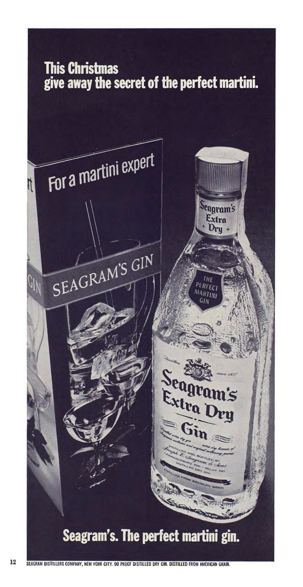 1968 This Christmas give away the secret of the perfect martini. Seagram's