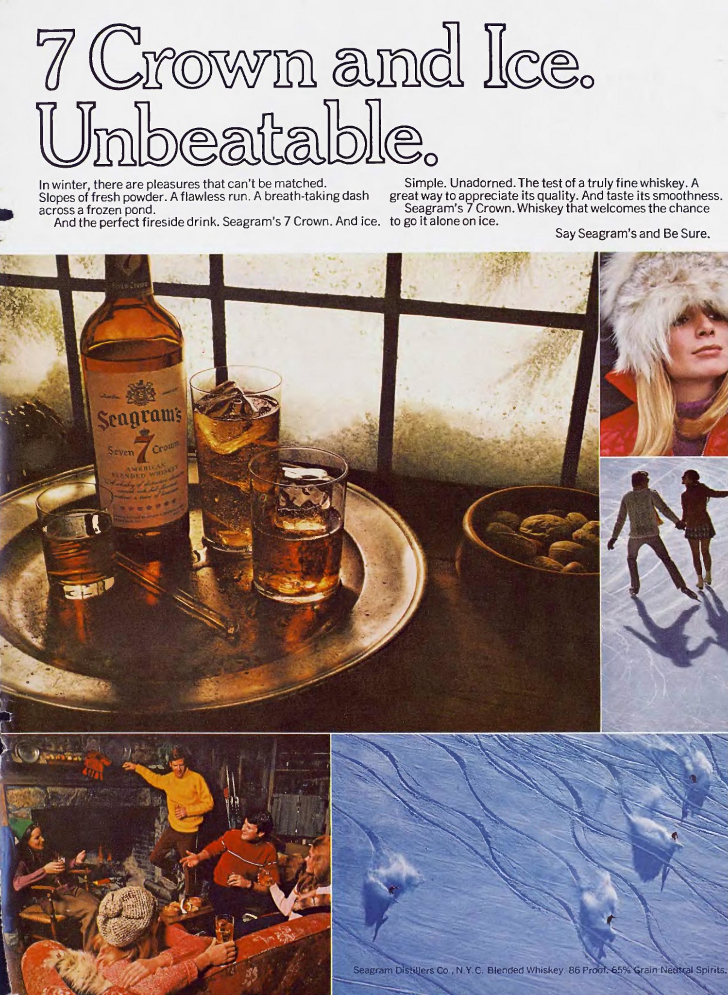 1970 7 Crown and Ice. Unbeatable. Seagram’s