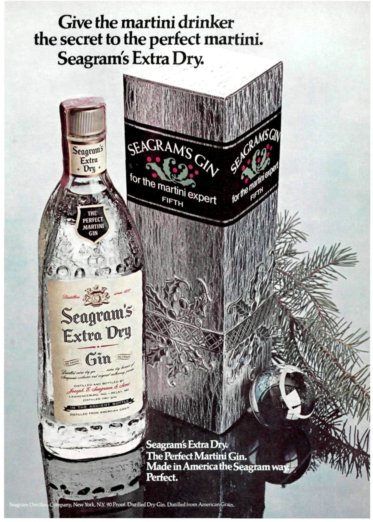 1971 Give the martini drinker the secret to the perfect martini. Seagram’s Extra Dry