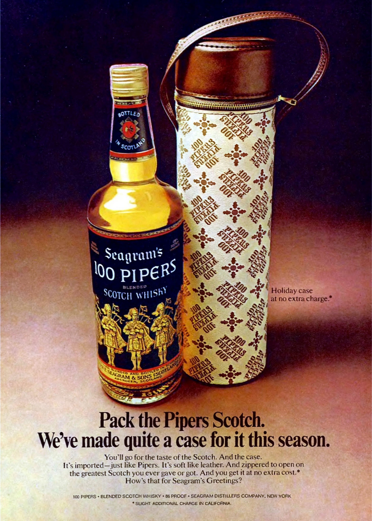 1974 Pack the Pipers Scotch. We've made quite a case for this season. Seagram's
