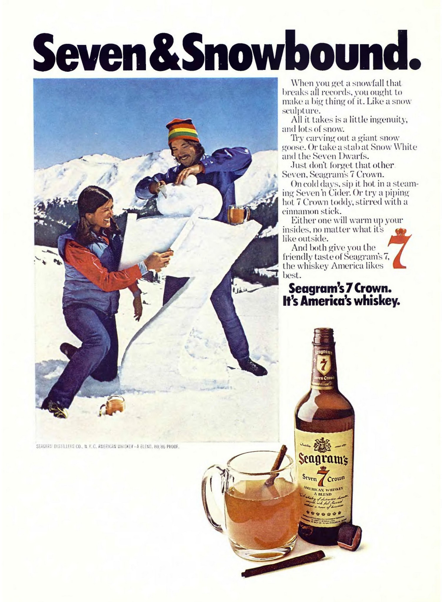 1974 Seven & Snowbound. Seagram's 7 Crown. It's America's whiskey