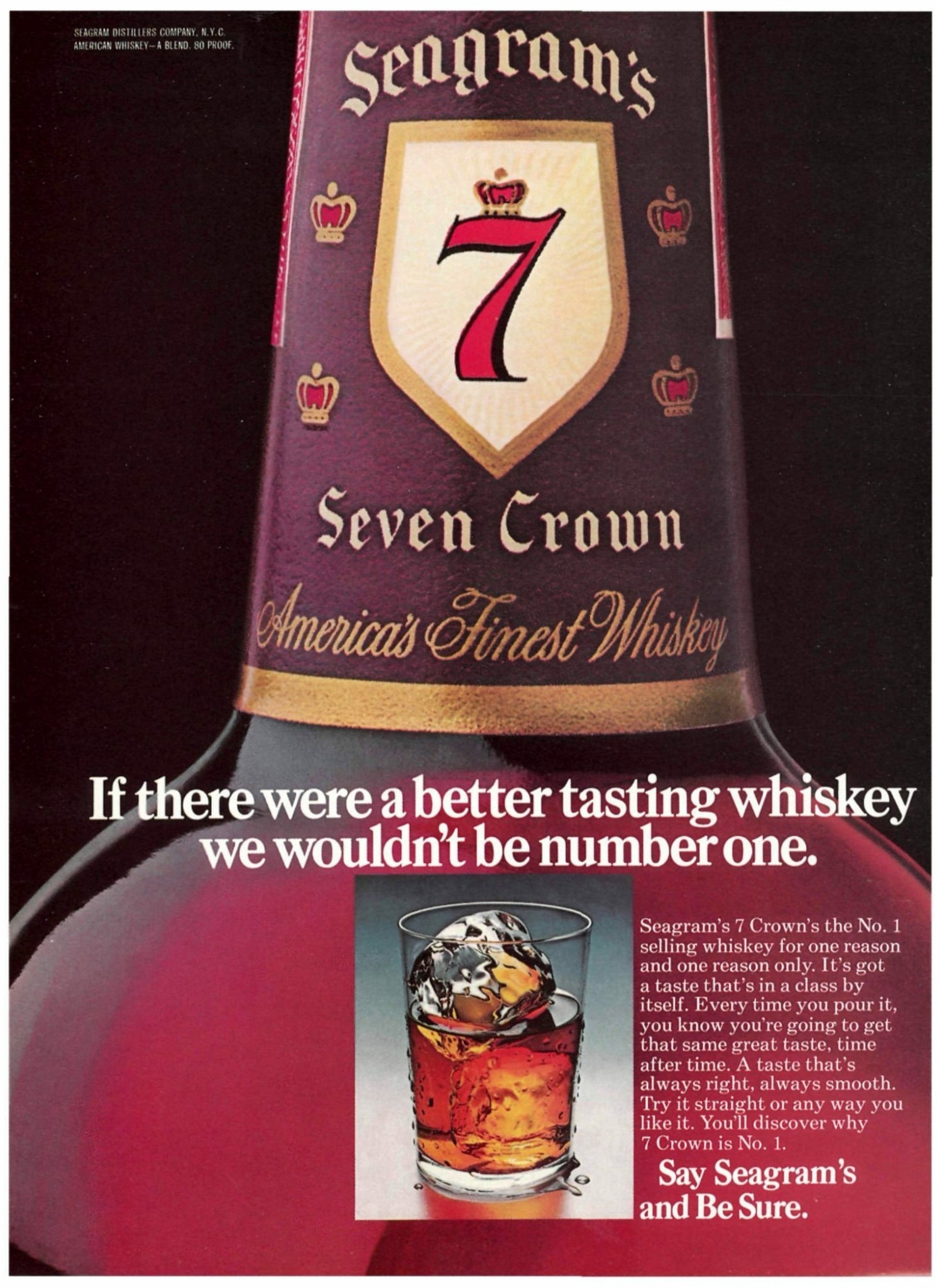1975 If there were a better tasting whiskey we wouldn’t be number one. Seagram’s Seven Crown