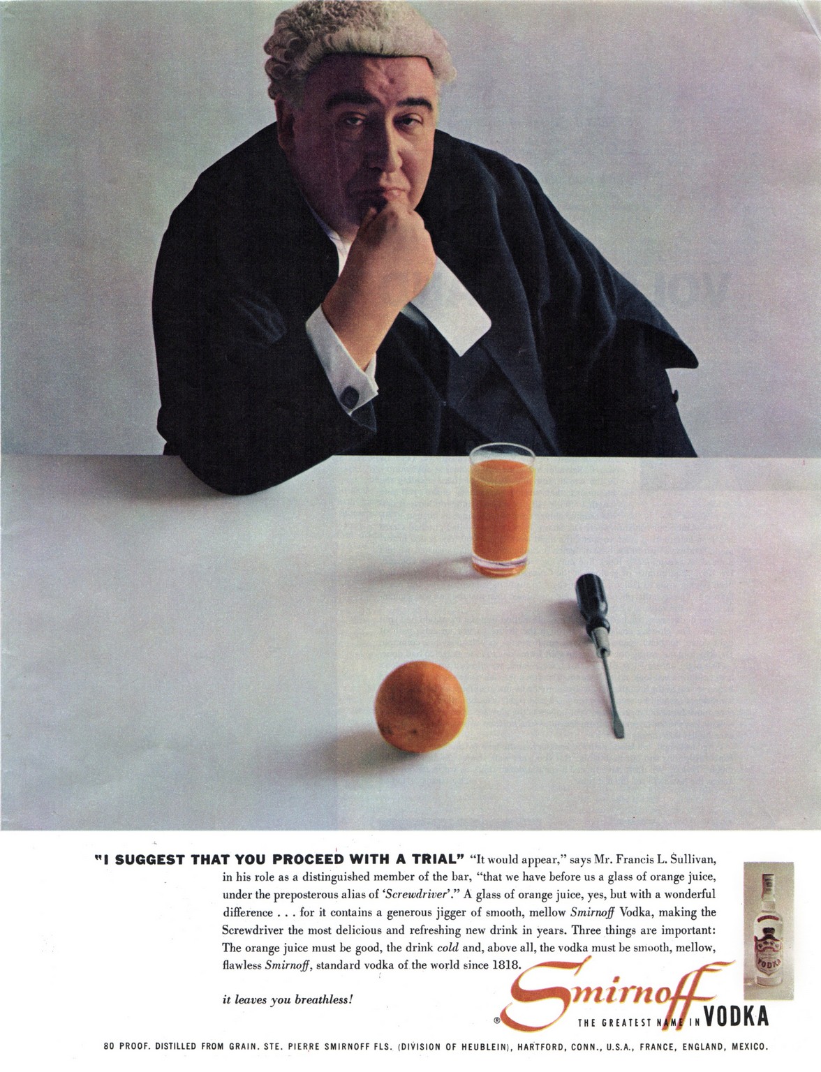 1956 'I Suggest That You Proceed With A Trial'. Smirnoff Vodka