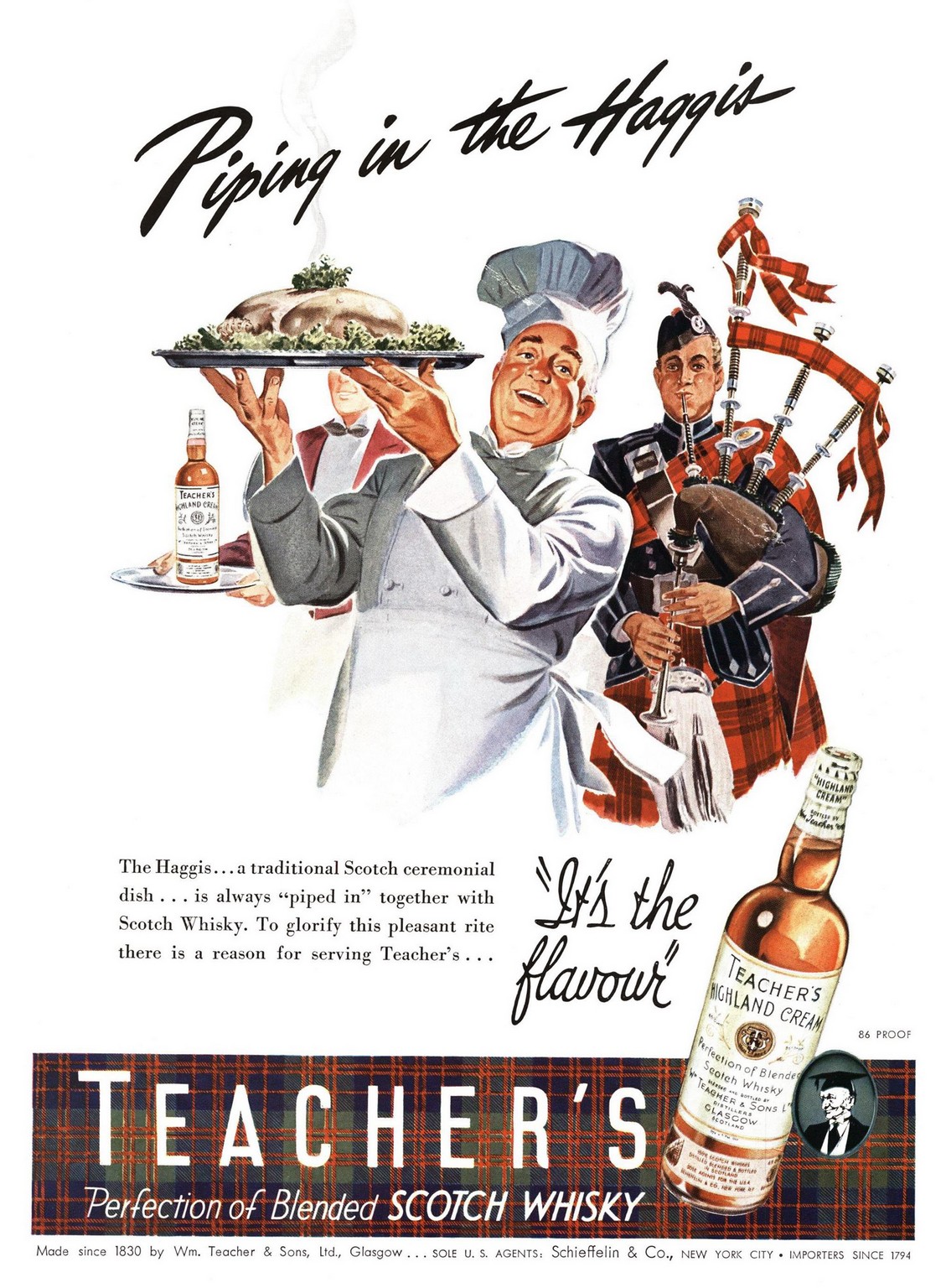 1942 Piping in the Haggis. ‘It’s the flavour’ Teacher’s